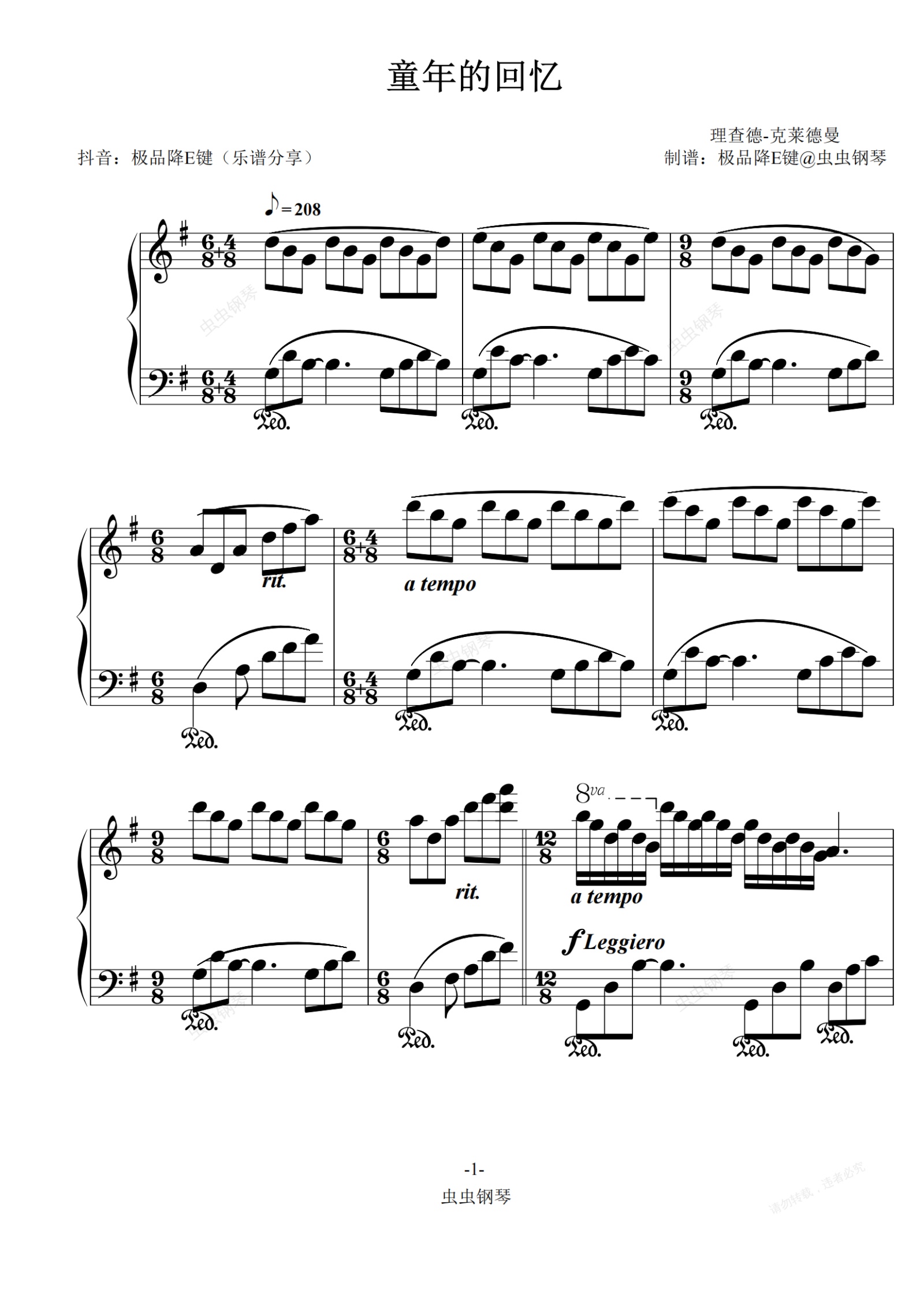 钢琴谱:童年的回忆/Childhood Memories-原版重制版