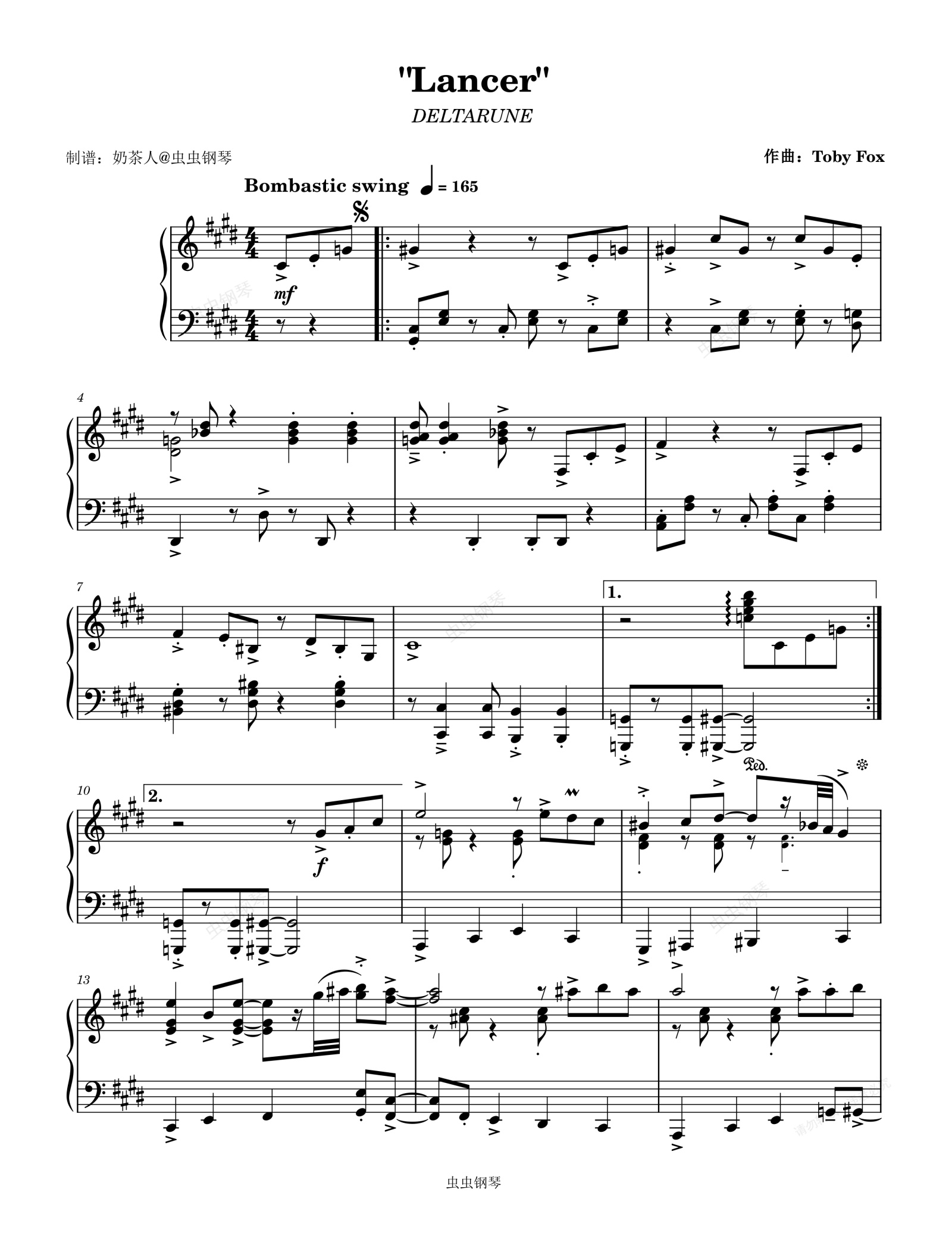 钢琴谱:《Lancer》DELTARUNE三角符文BGM