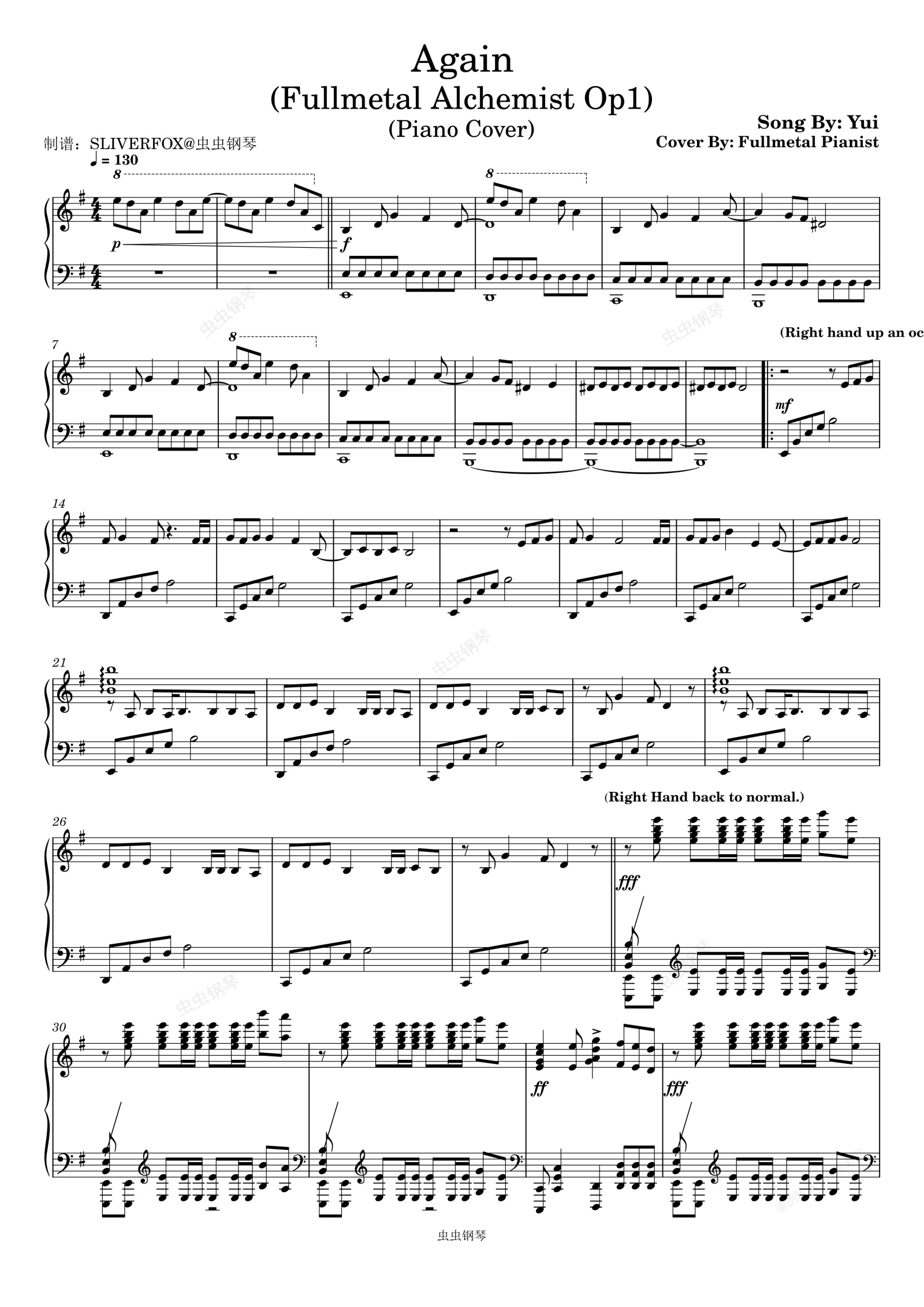 钢琴谱:《Again》钢之炼金术师片头曲 独奏