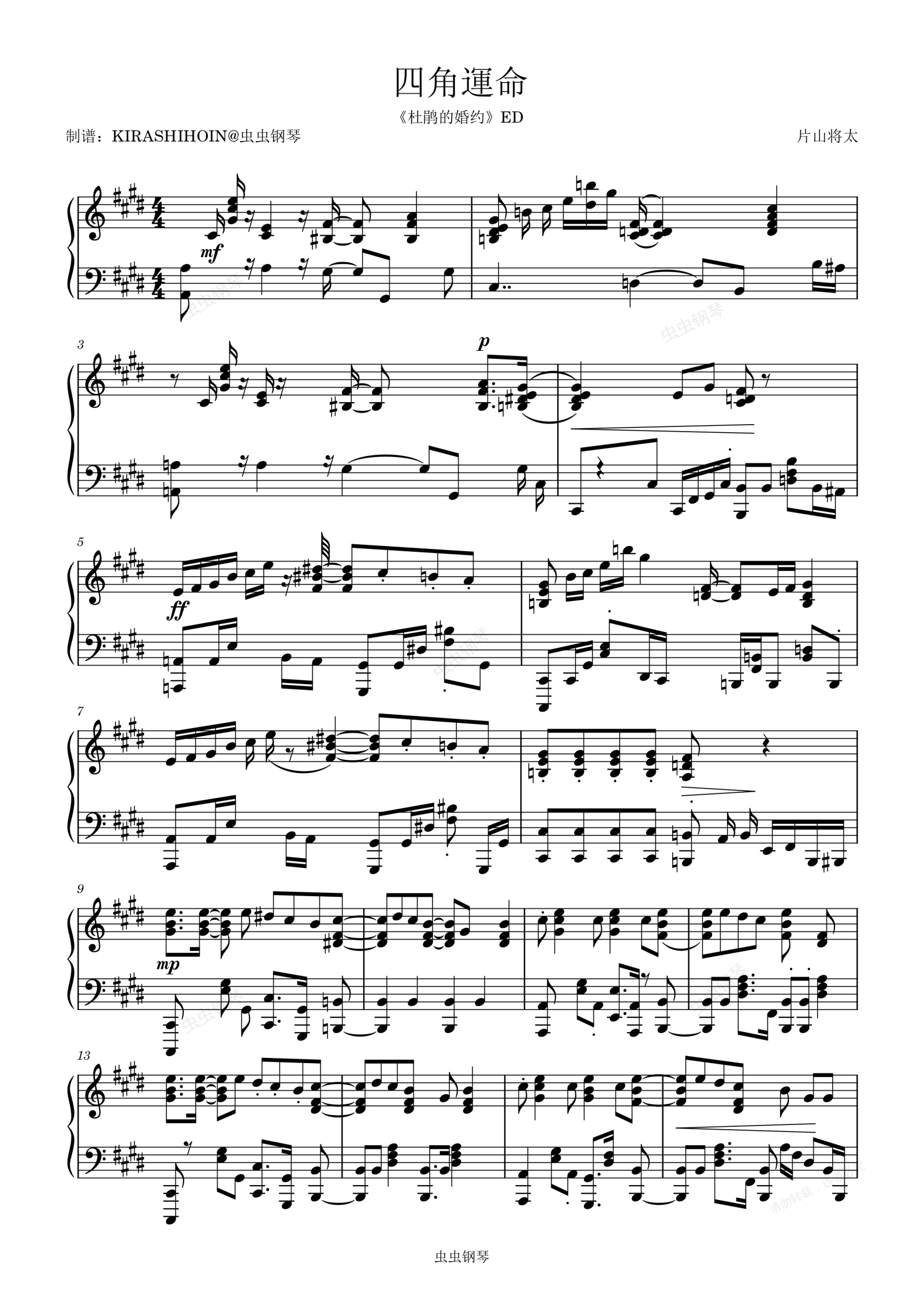 钢琴谱:四角運命(《杜鹃的婚约》ED/片尾曲)- 三月のパンタシア