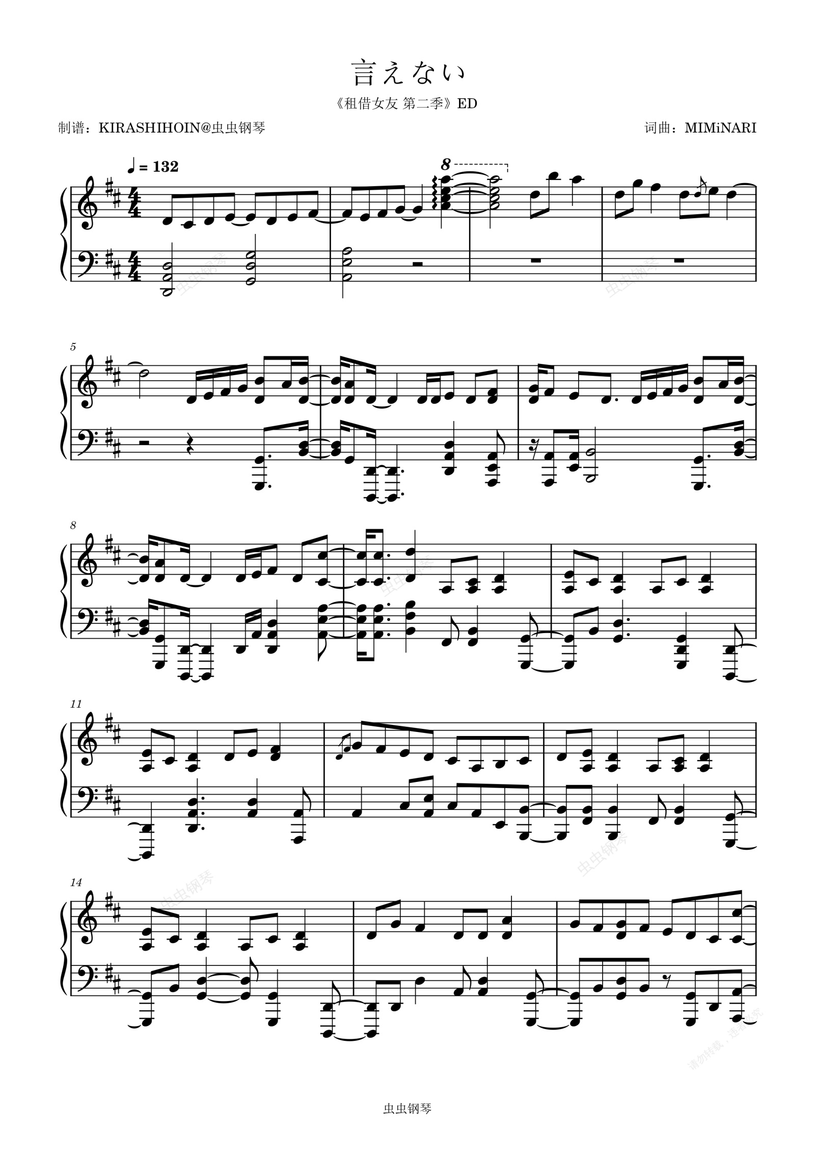 钢琴谱:言えない(《租借女友 第二季》ED/片尾曲)- MIMiNARI/asmi
