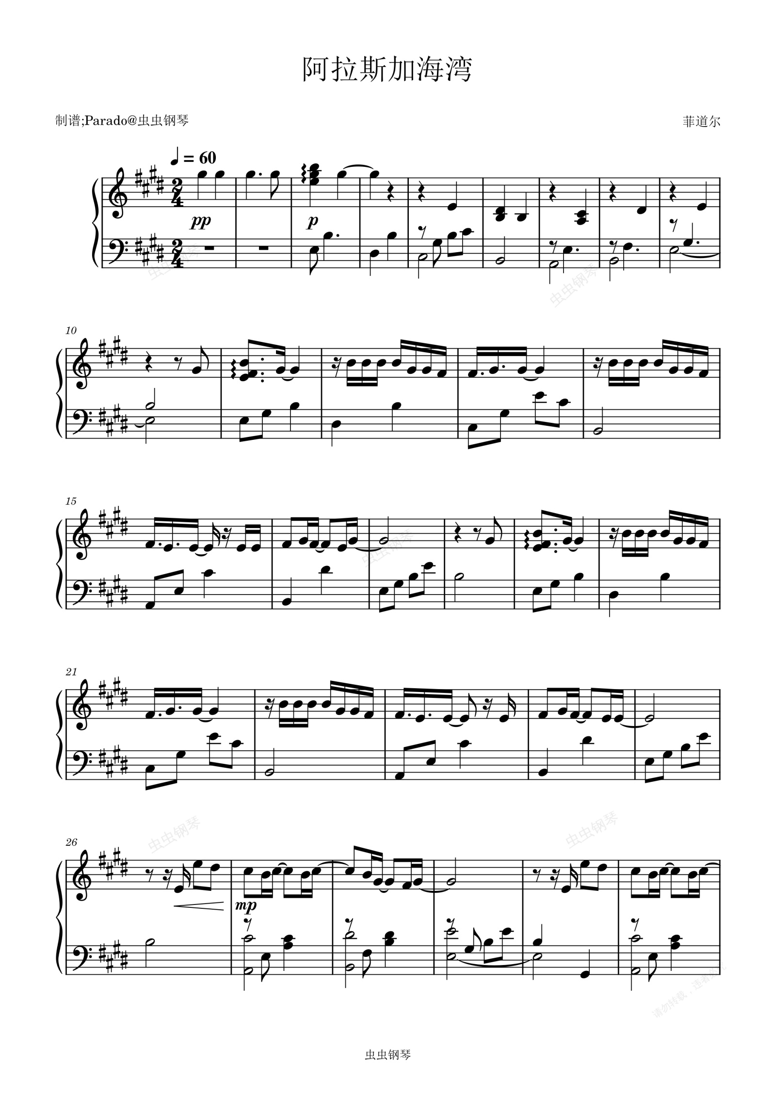 钢琴谱:阿拉斯加海湾 - 菲道尔