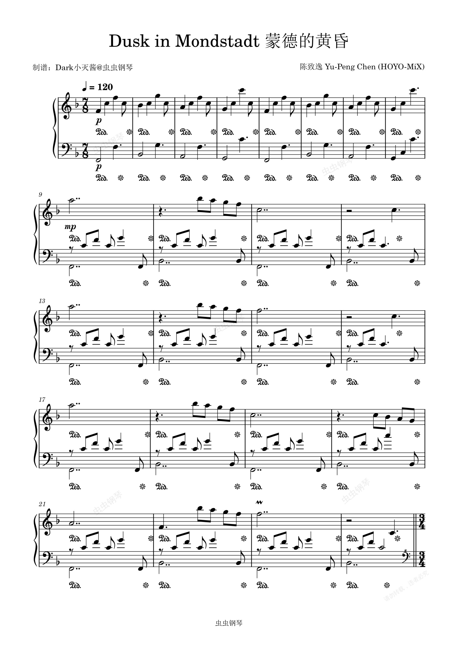 钢琴谱:【原神·蒙德】Dusk in Mondstadt 蒙德的黄昏