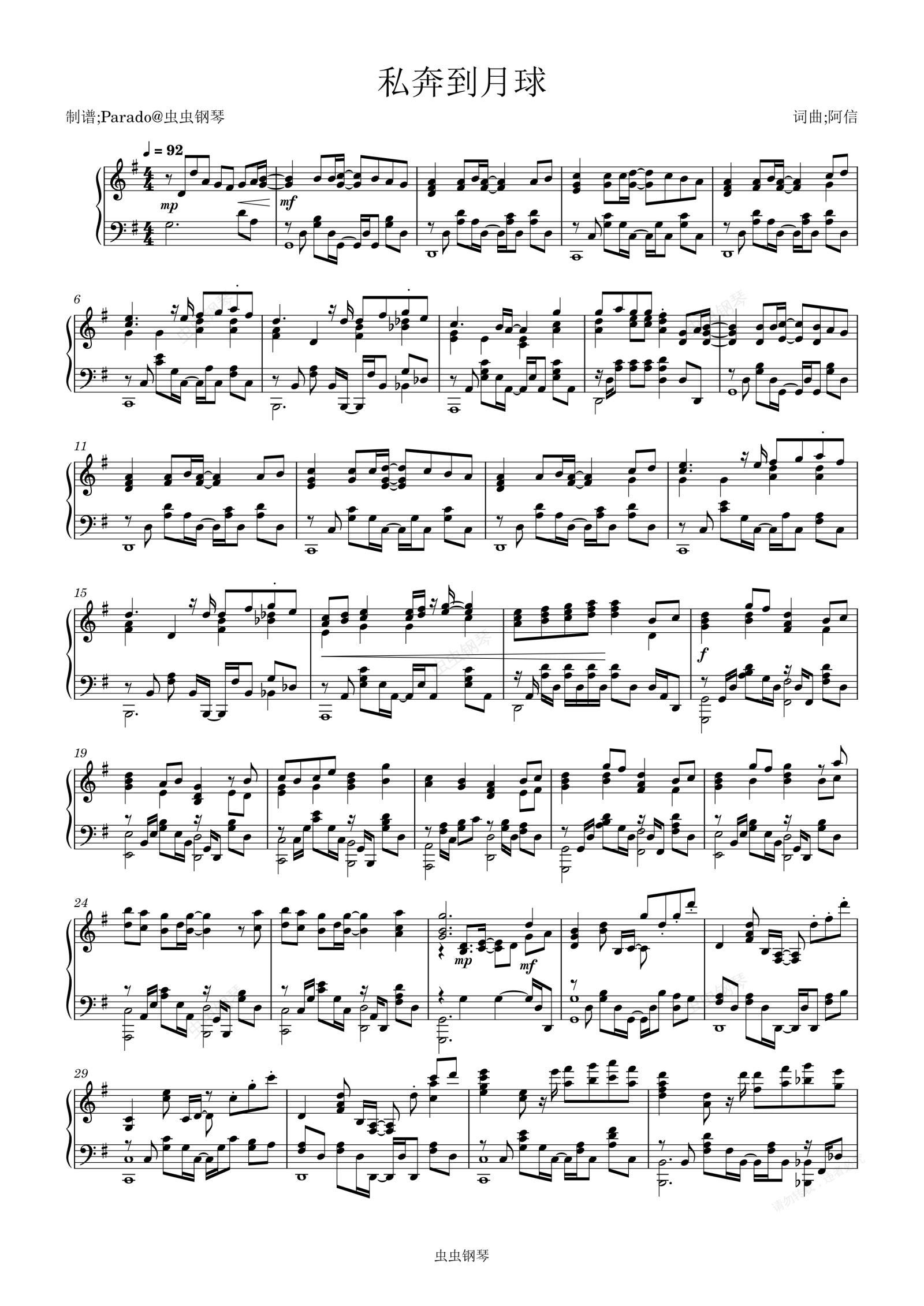 钢琴谱:私奔到月球 - 五月天 /陈绮贞