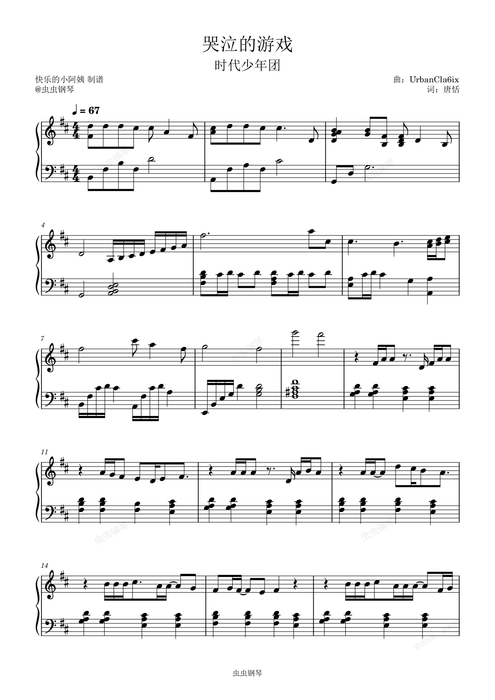 钢琴谱:哭泣的游戏原调-TNT时代少年团