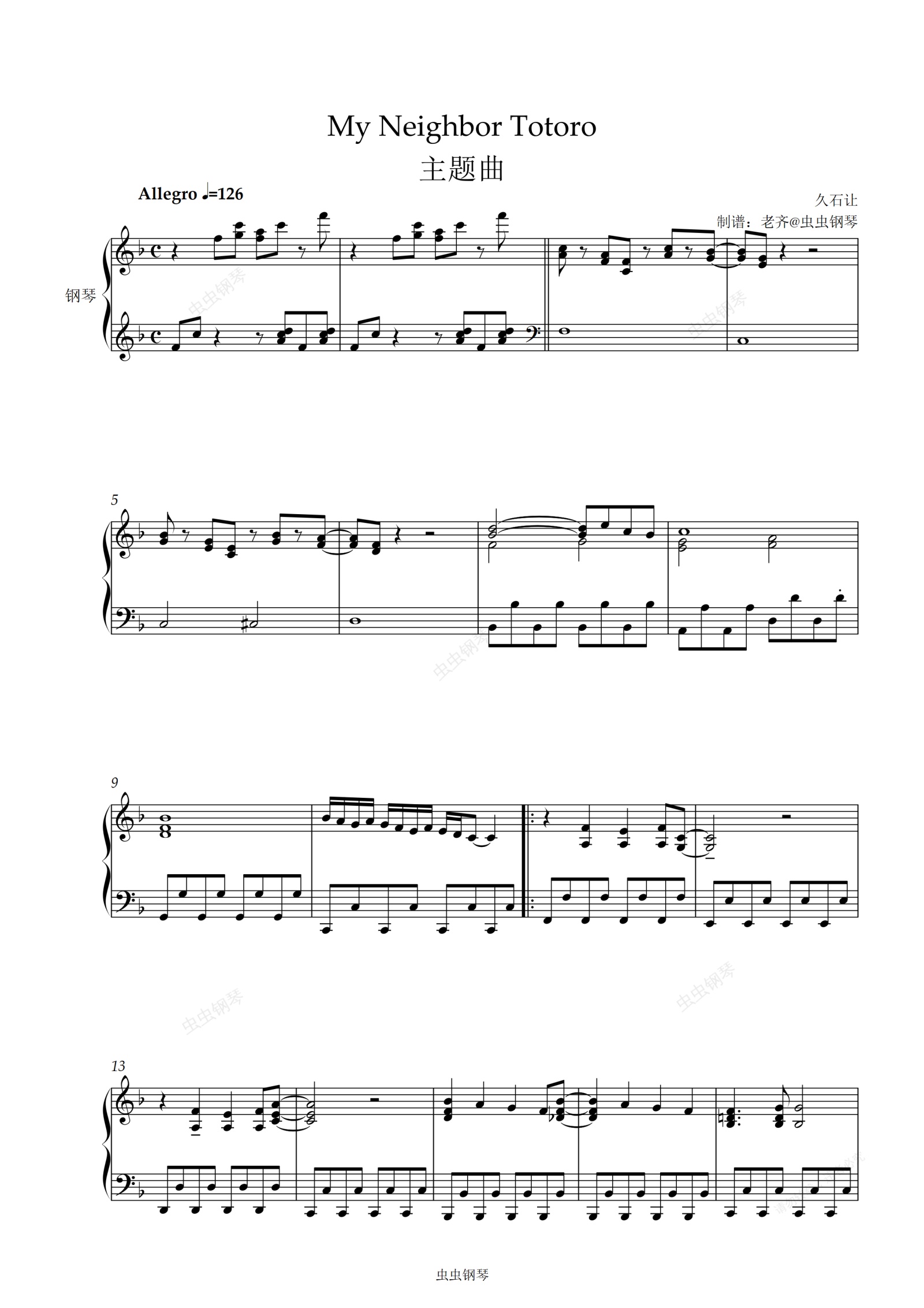 钢琴谱:龙猫-My Neighbor Totoro 主题曲