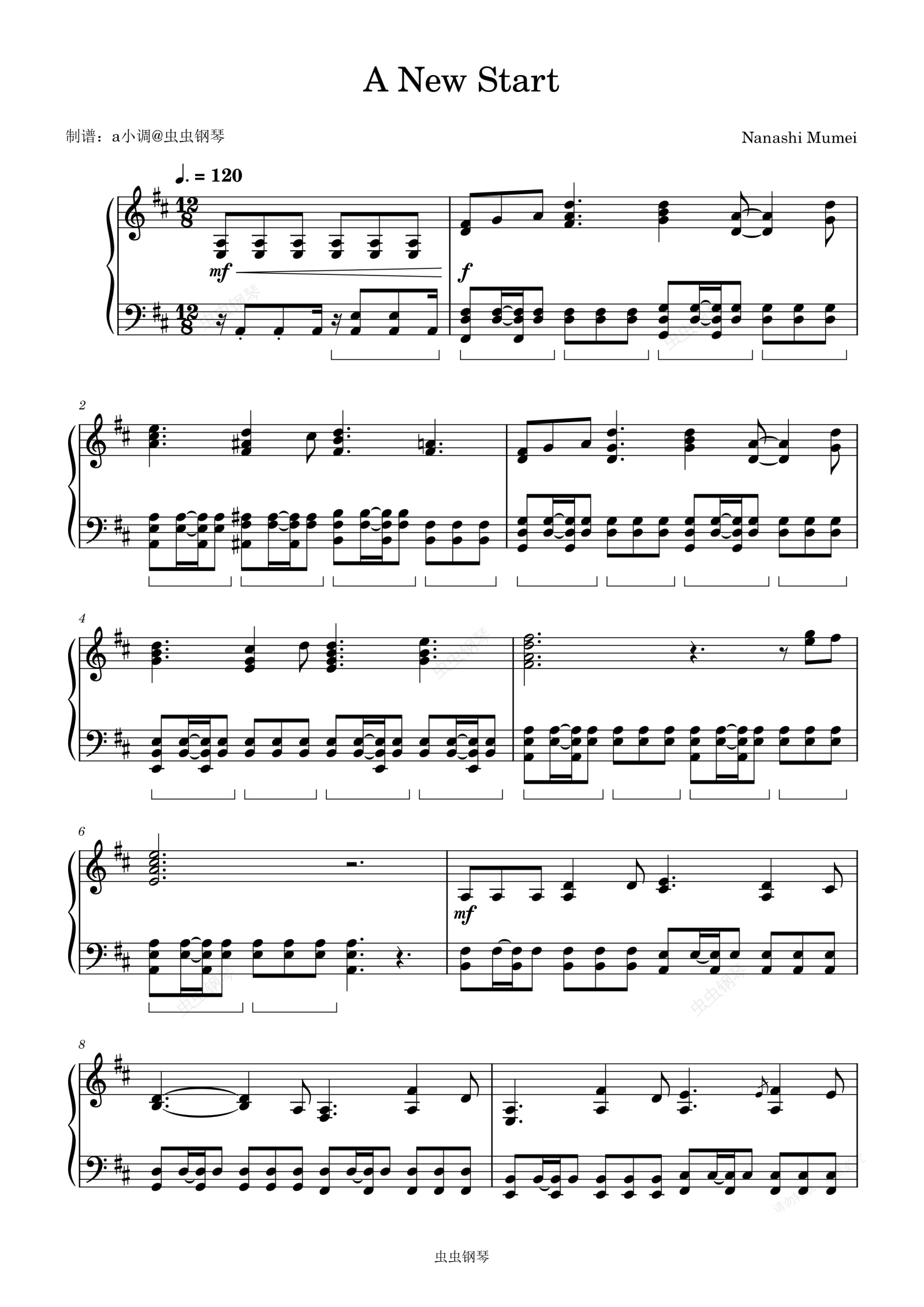 钢琴谱:A New Start - Nanashi Mumei