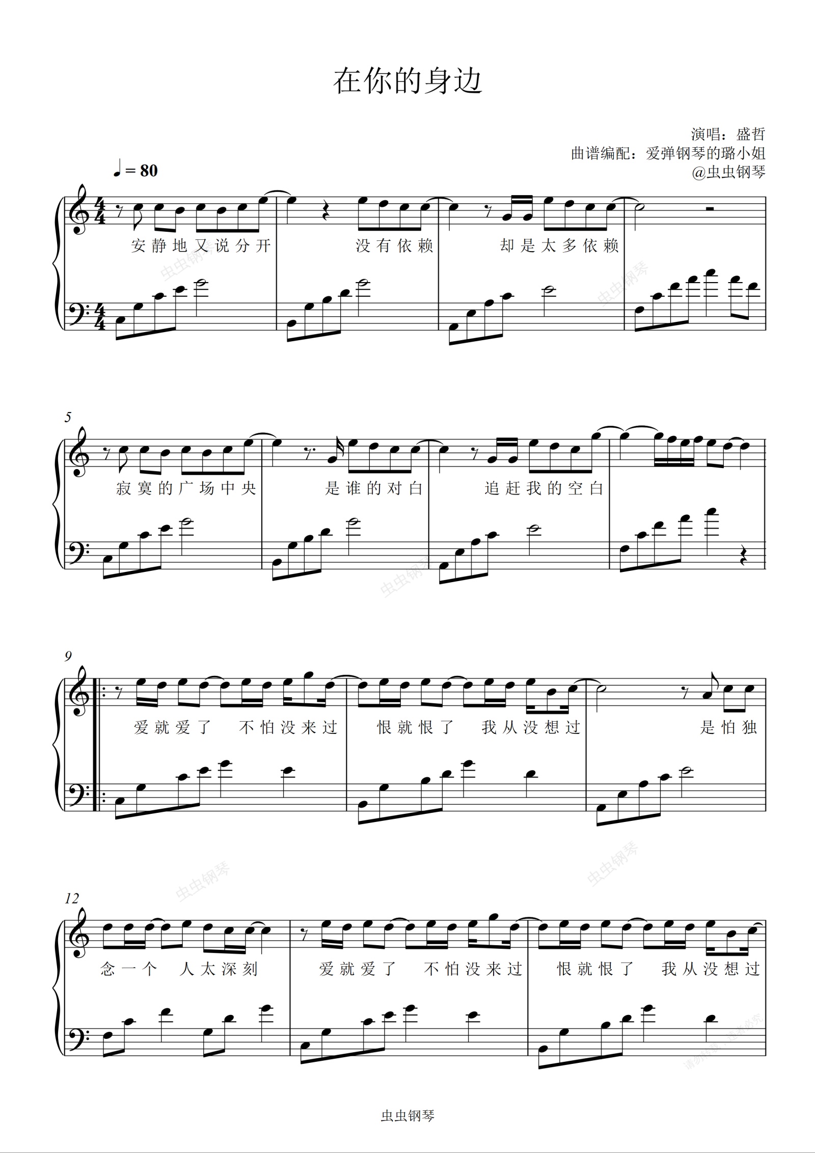 钢琴谱:在你的身边 - 抖音热歌 - C调简单版 - 附歌词