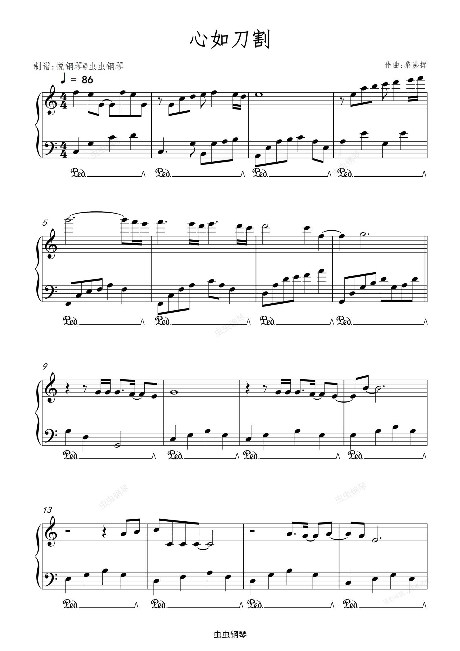 钢琴谱:心如刀割 (怀旧经典)张学友
