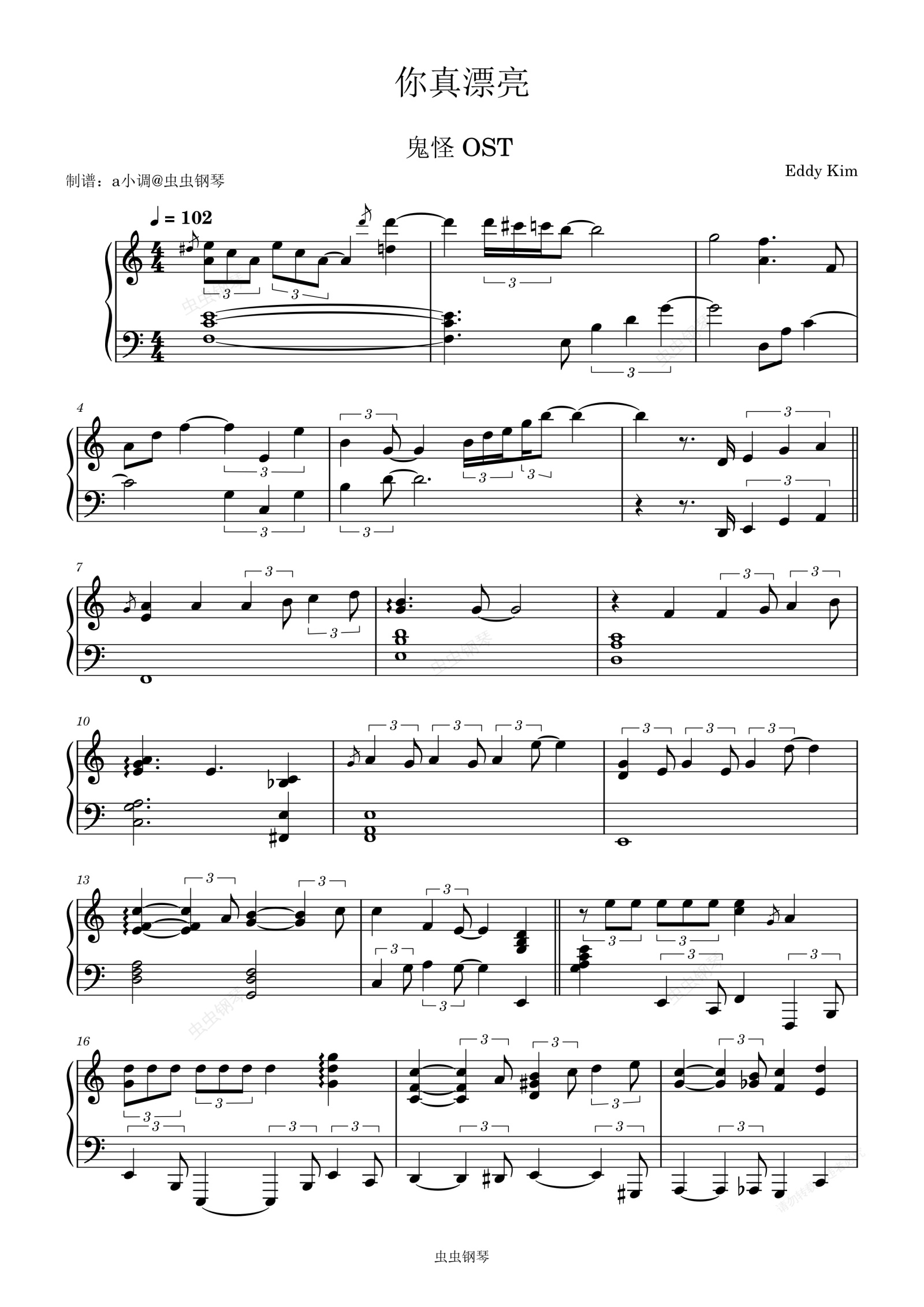 钢琴谱:你真漂亮 아름다운 그대여 - 鬼怪 OST