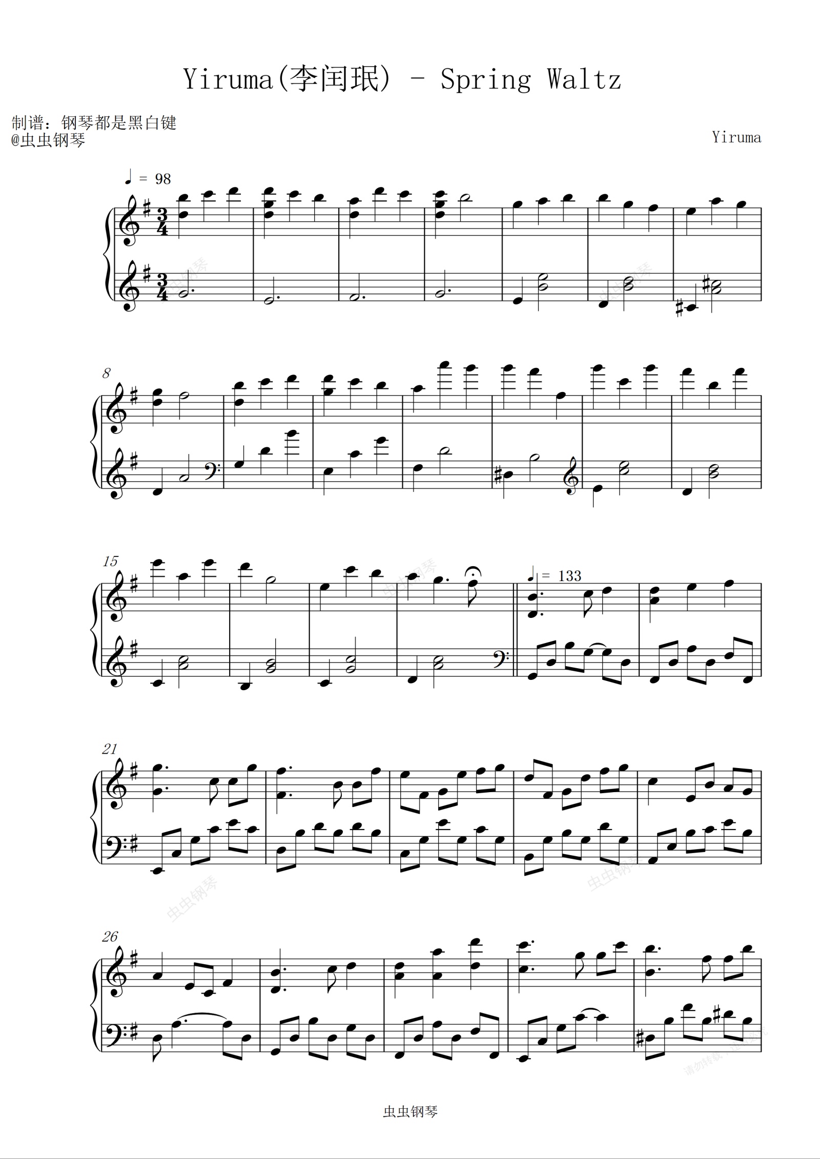 钢琴谱:Yiruma(李闰岷) - Spring Waltz 【优美钢琴曲】