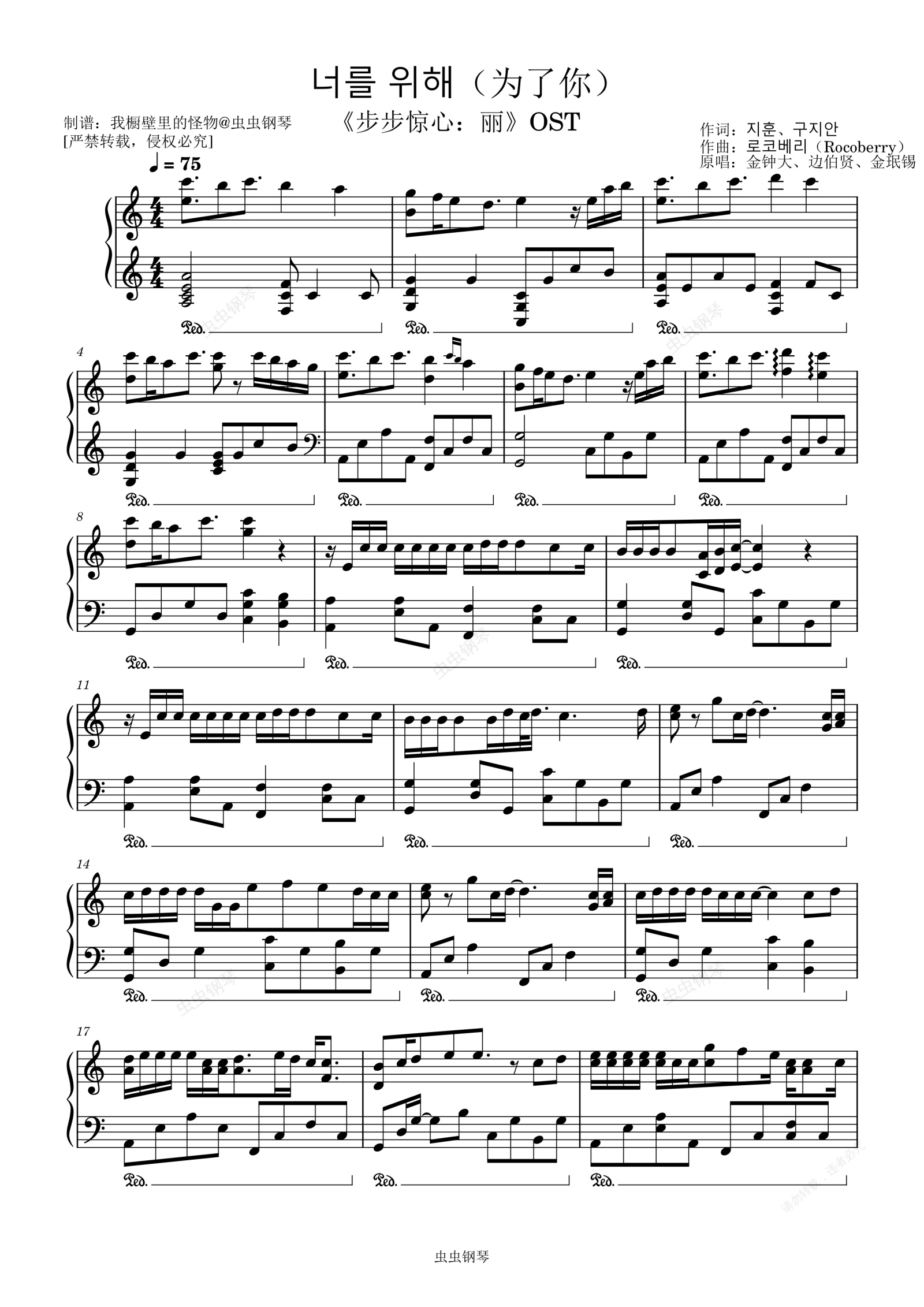 钢琴谱:너를 위해(为了你)【步步惊心·丽】韩剧OST演奏谱「怪物」