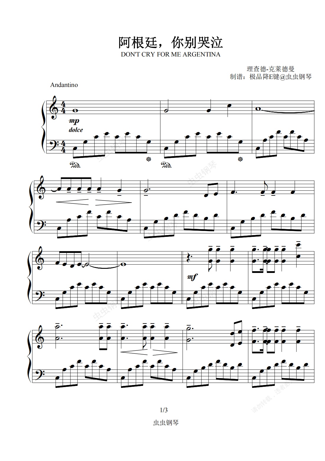 钢琴谱:阿根廷,你别哭泣2022精心制谱