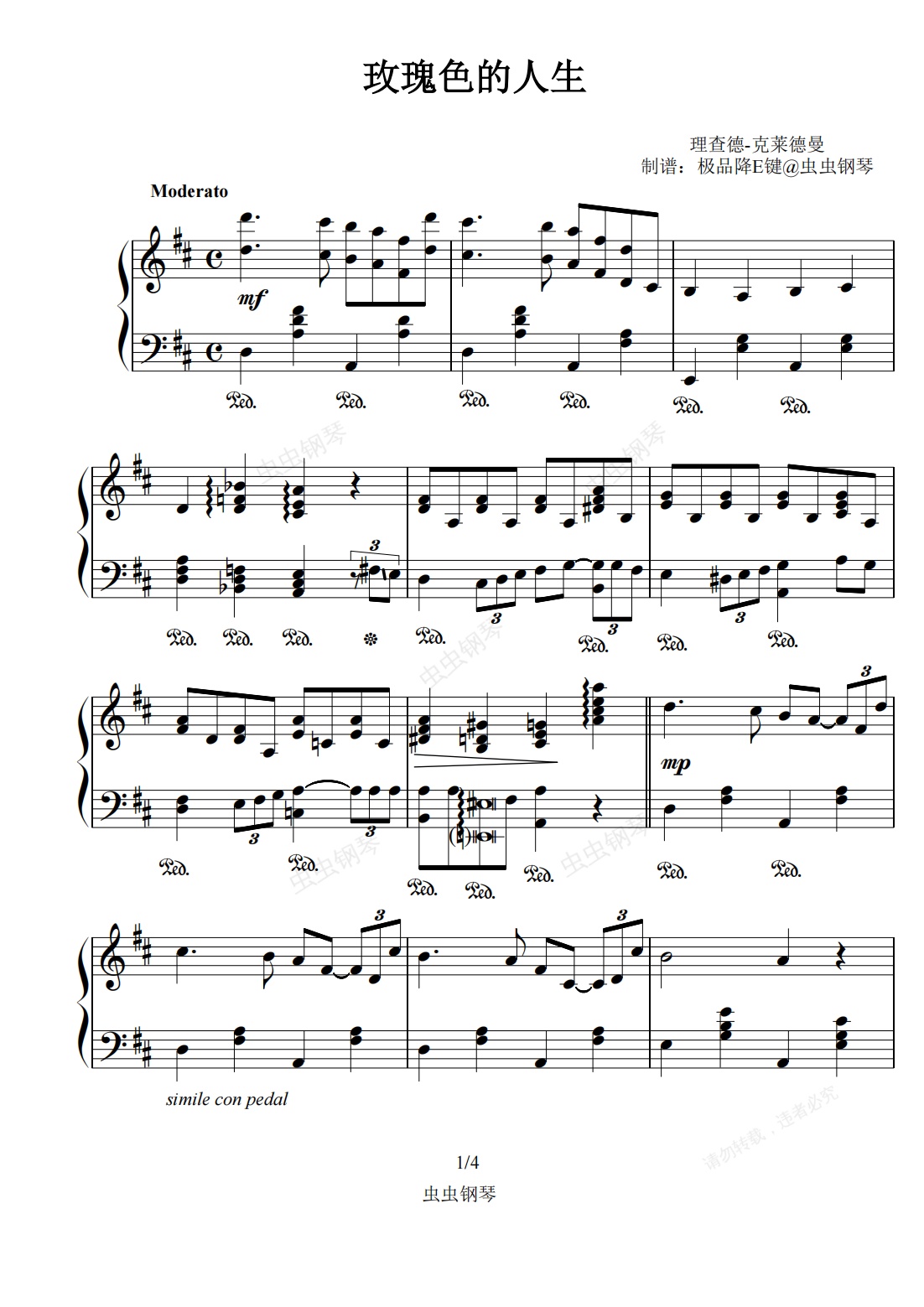 钢琴谱:玫瑰色的人生2022精心制谱