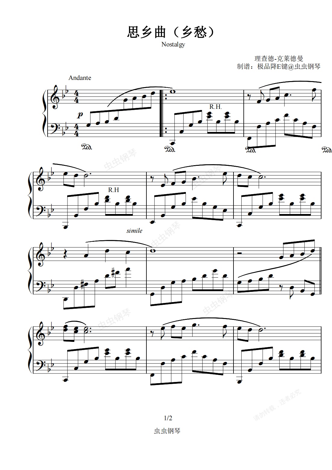 钢琴谱:思乡曲(乡愁)2022精心制谱