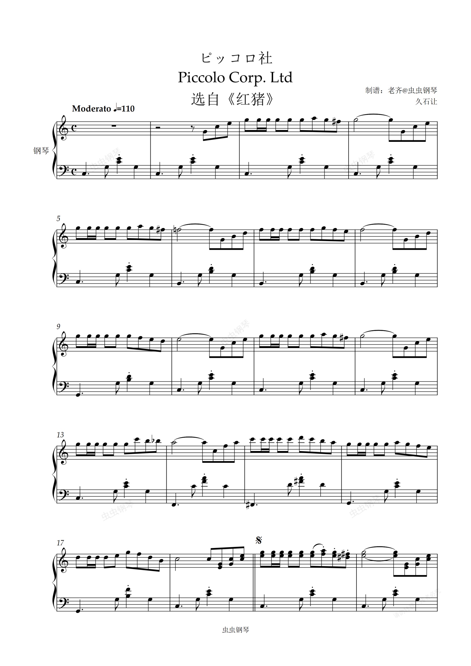 钢琴谱:【红猪】ピッコロ社/Piccolo Corp. Ltd