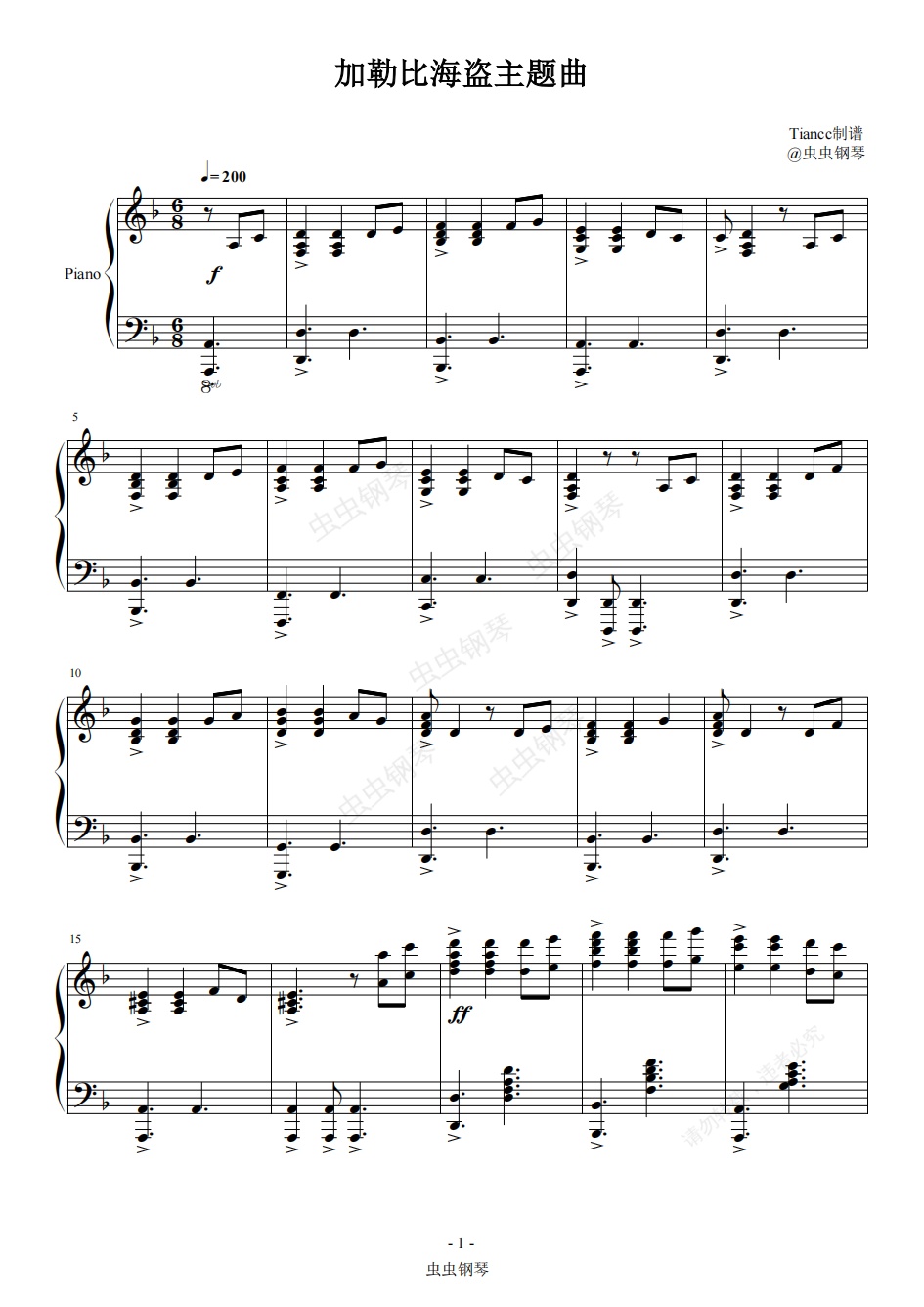 钢琴谱:《加勒比海盗主题曲》完美还原大神作品,排版清晰,表示我可以弹