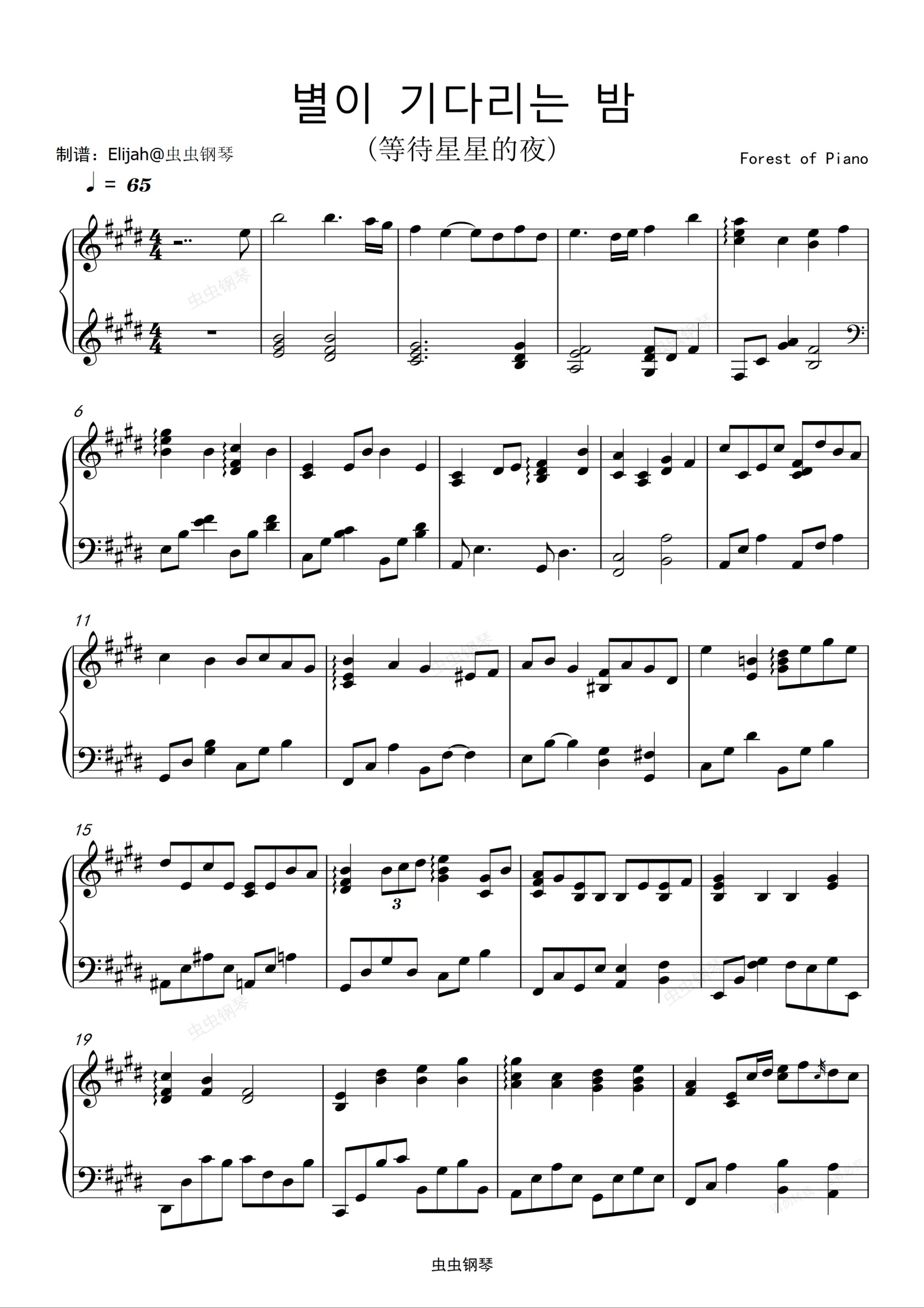 钢琴谱:별이 기다리는 밤(等待星星的夜)