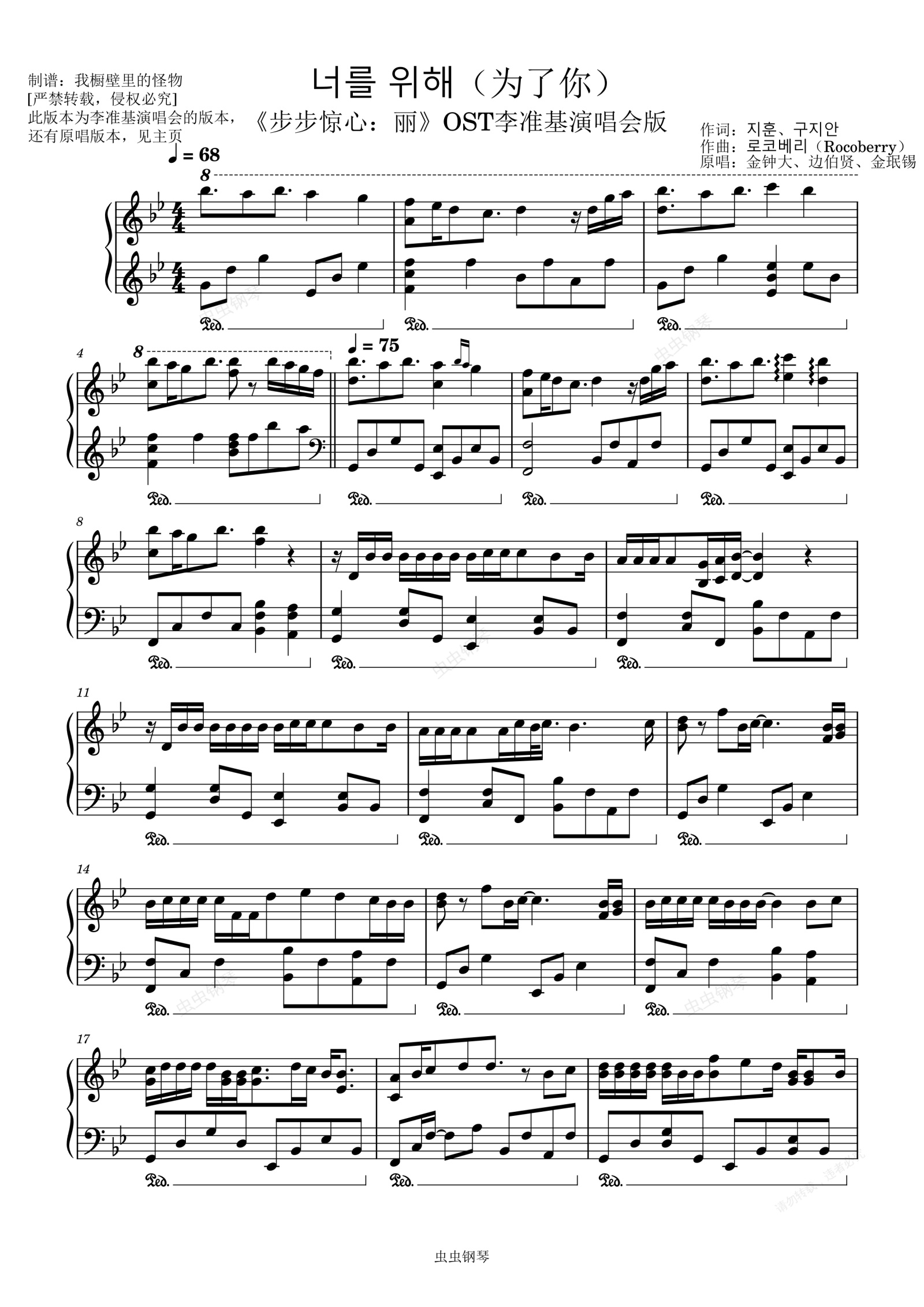 钢琴谱:너를 위해(为了你)李准基演唱会唯美版【步步惊心丽】韩剧OST