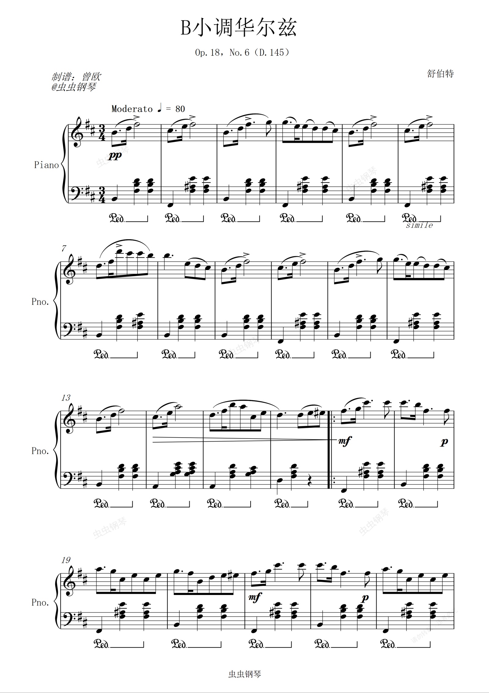 钢琴谱:舒伯特 - b小调华尔兹 Op.18,No.6(D.145)