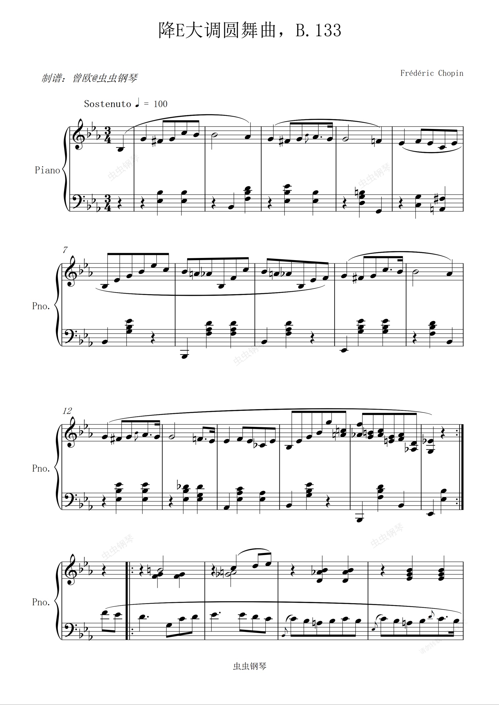钢琴谱:肖邦 - 降E大调圆舞曲,B.133 (免费易弹)