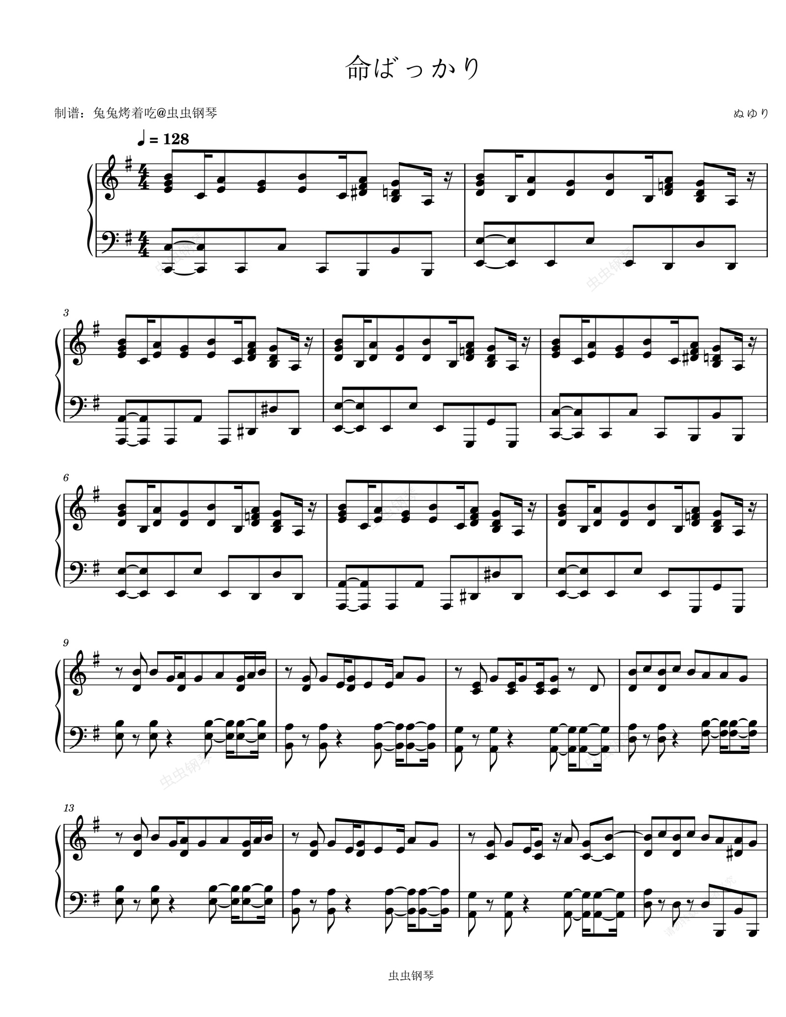 钢琴谱:《命ばっかり》只为生命 B站很火的一首歌曲 独奏