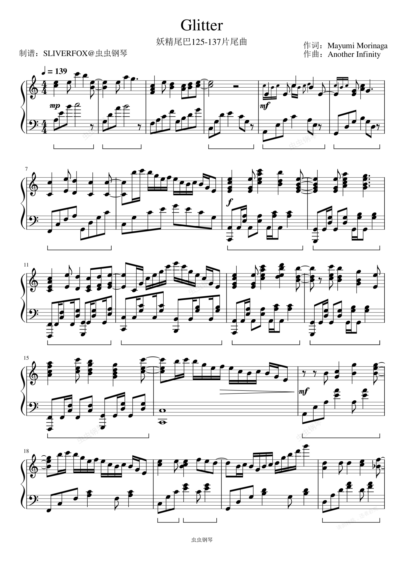 钢琴谱:《Glitter》妖精尾巴125-137片尾曲 高难版