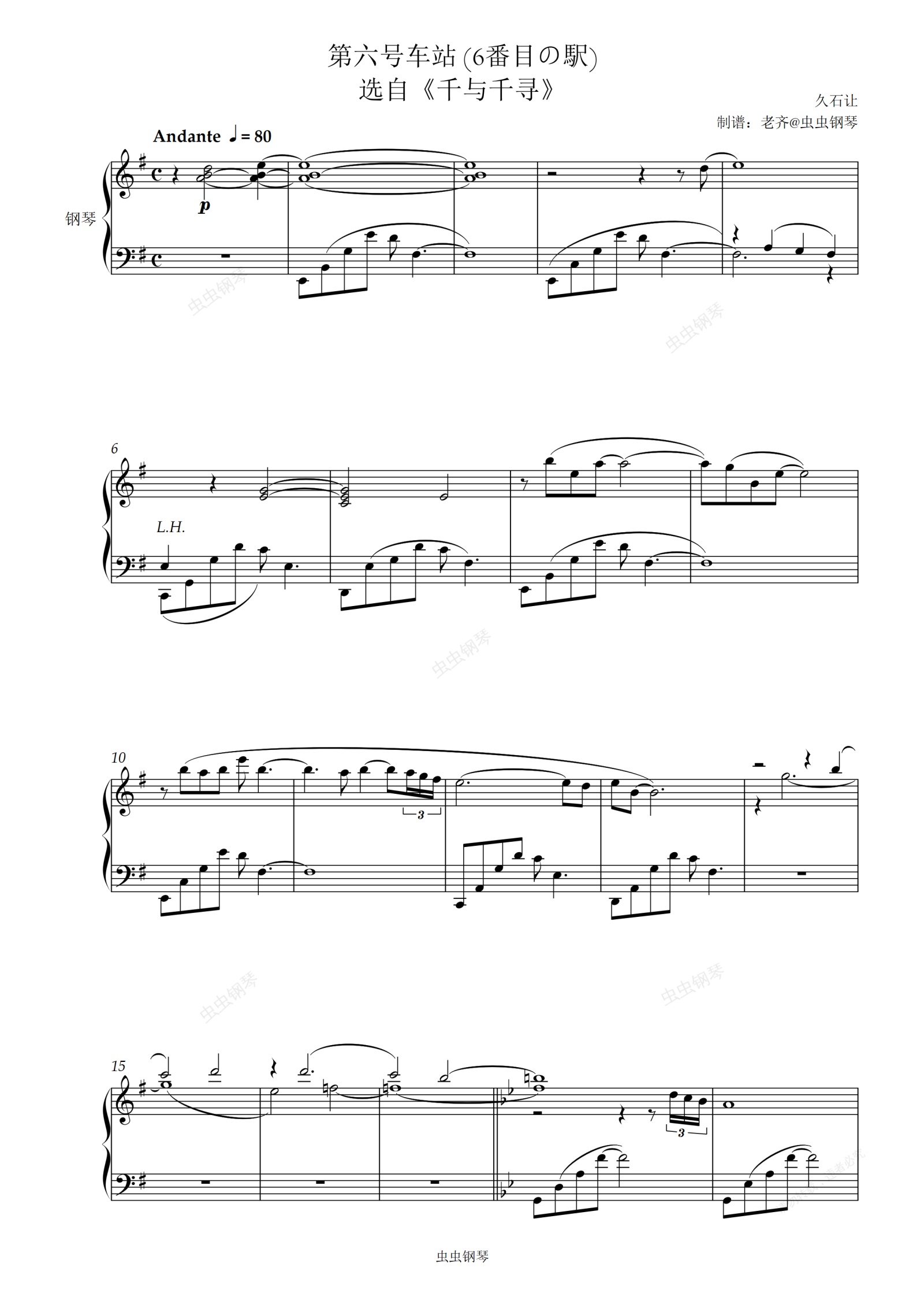 钢琴谱:【千与千寻】第六号车站 6番目の駅
