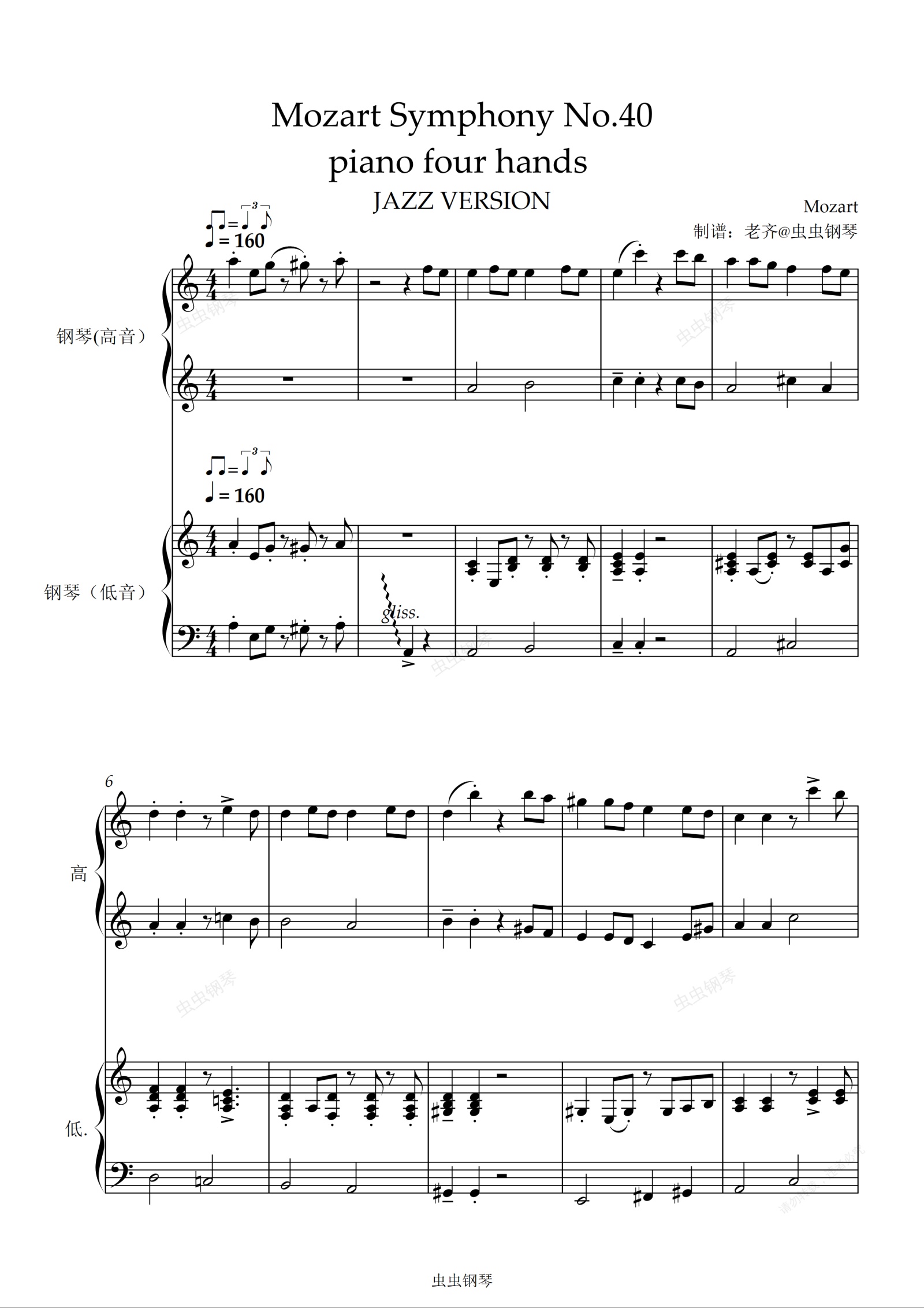 钢琴谱:【爵士四手联弹】莫扎特第四十交响乐