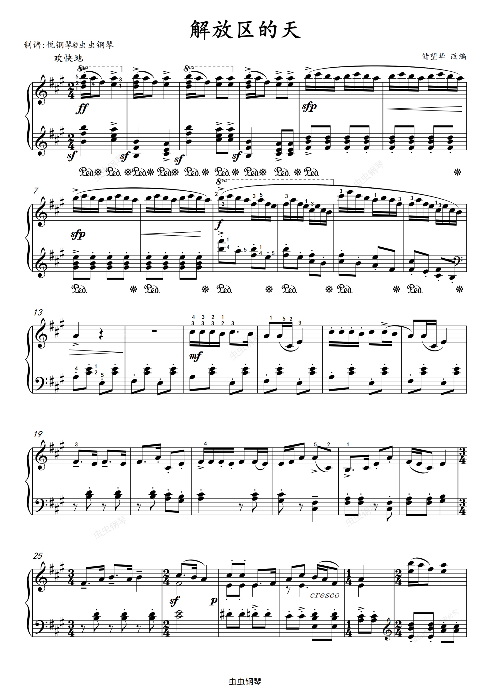 钢琴谱:解放区的天(九级) 储望华 改编