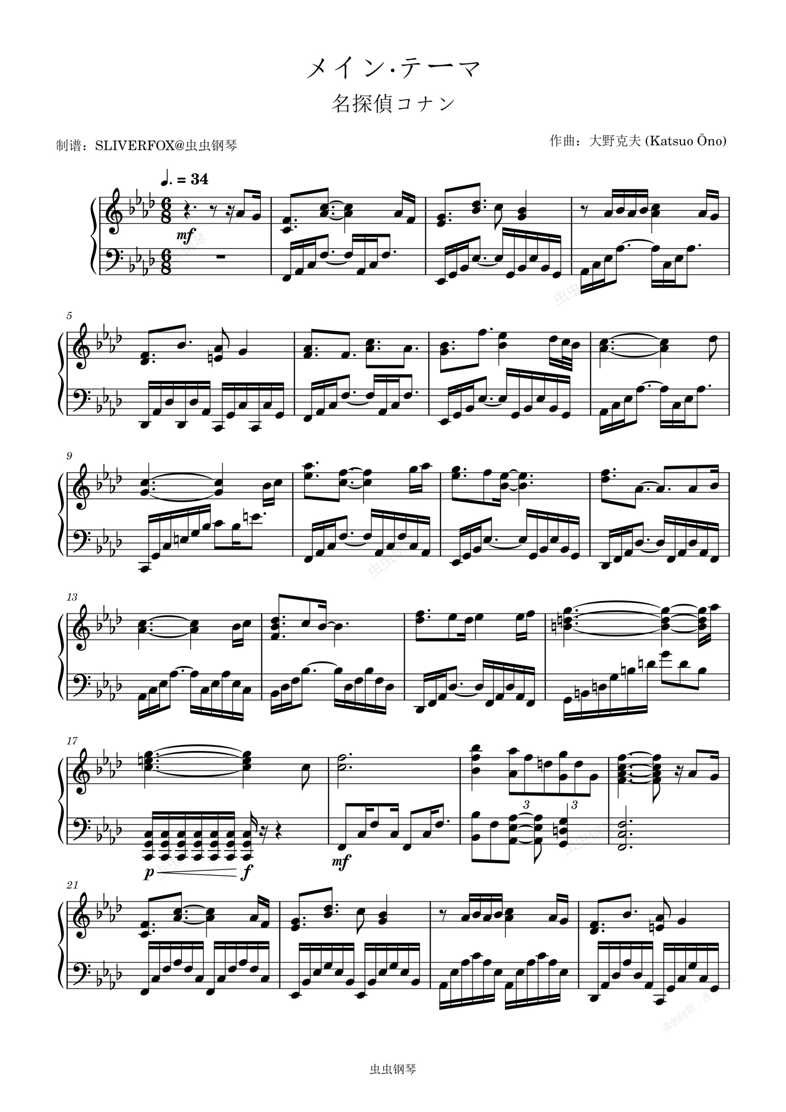 钢琴谱:《メイン・テーマ》名侦探柯南主题曲 慢版