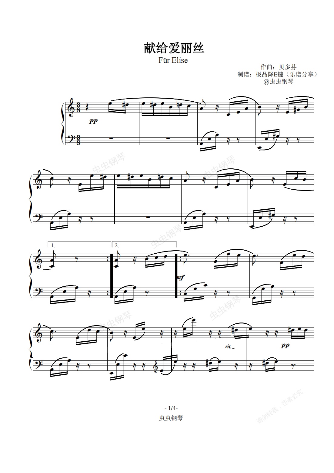 钢琴谱:献给爱丽丝Für Elise 2022倾心优化