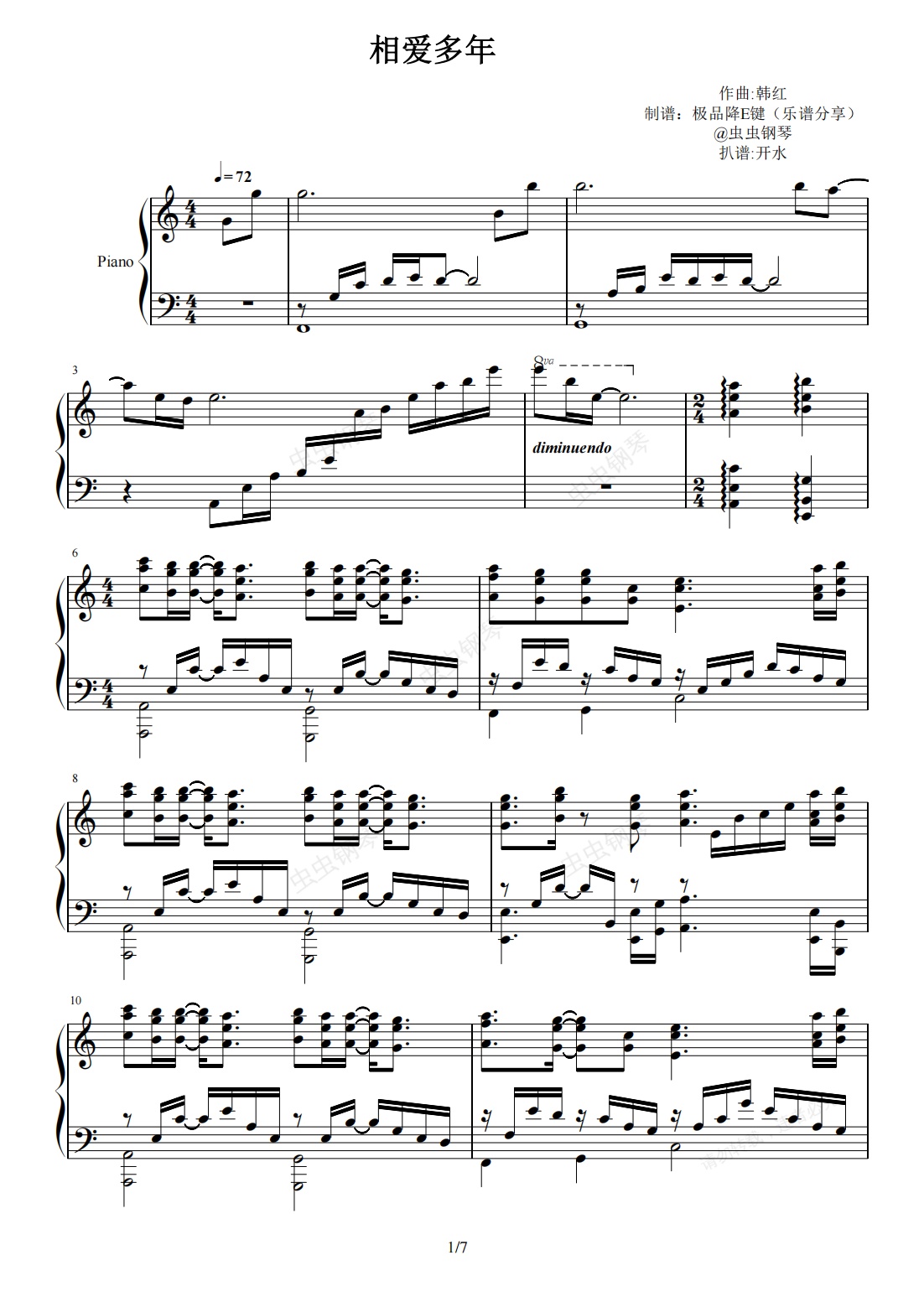 钢琴谱:相爱多年(韩红)2022倾心优化