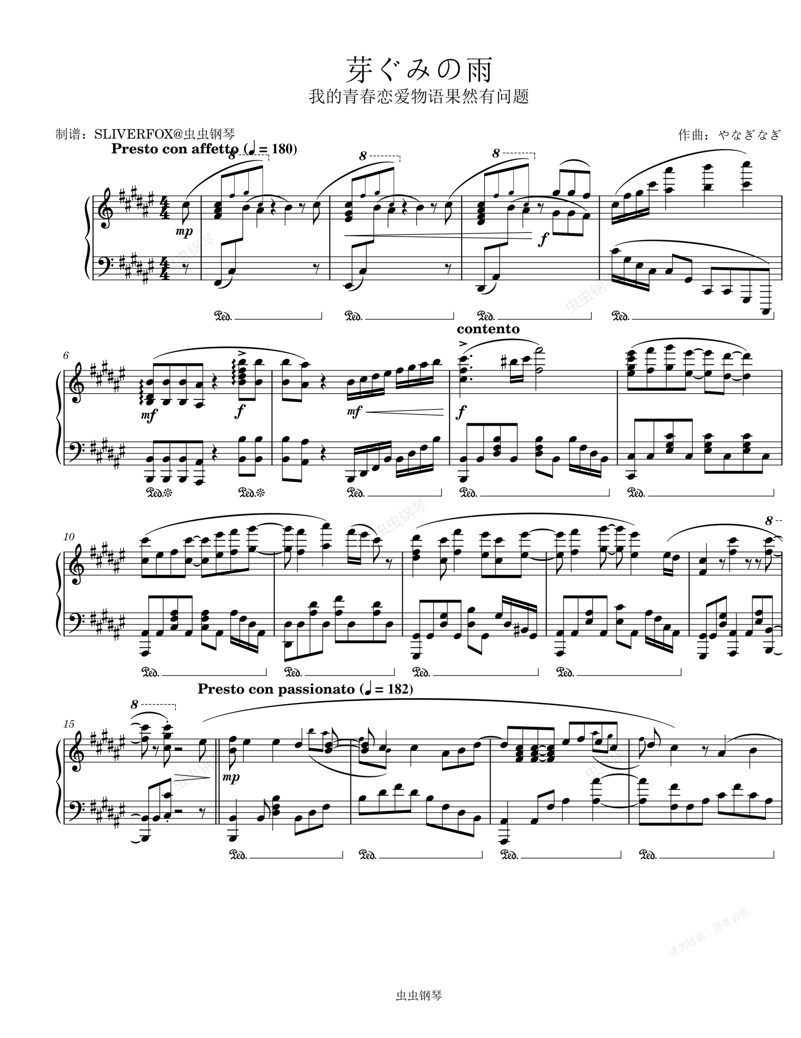钢琴谱:《芽ぐみの雨》我的青春恋爱物语果然有问题片头曲 原调独奏版