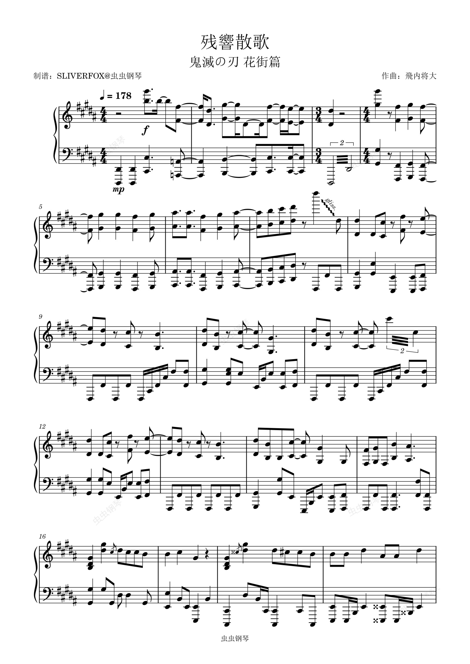 钢琴谱:《残響散歌》鬼滅の刃花街篇片头曲 独奏