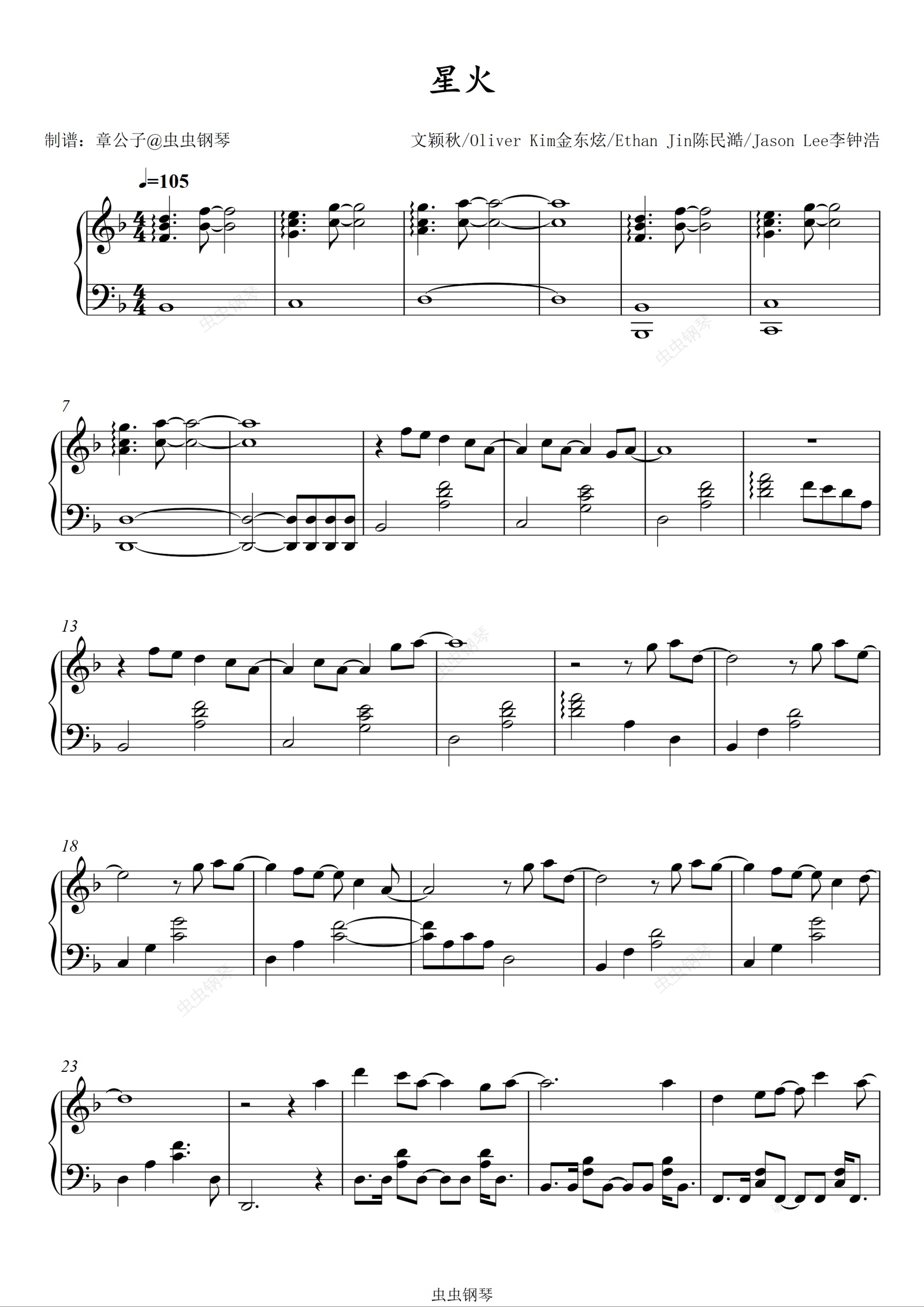 钢琴谱:星火 -《王者荣耀》戈娅英雄主打歌 吉克隽逸