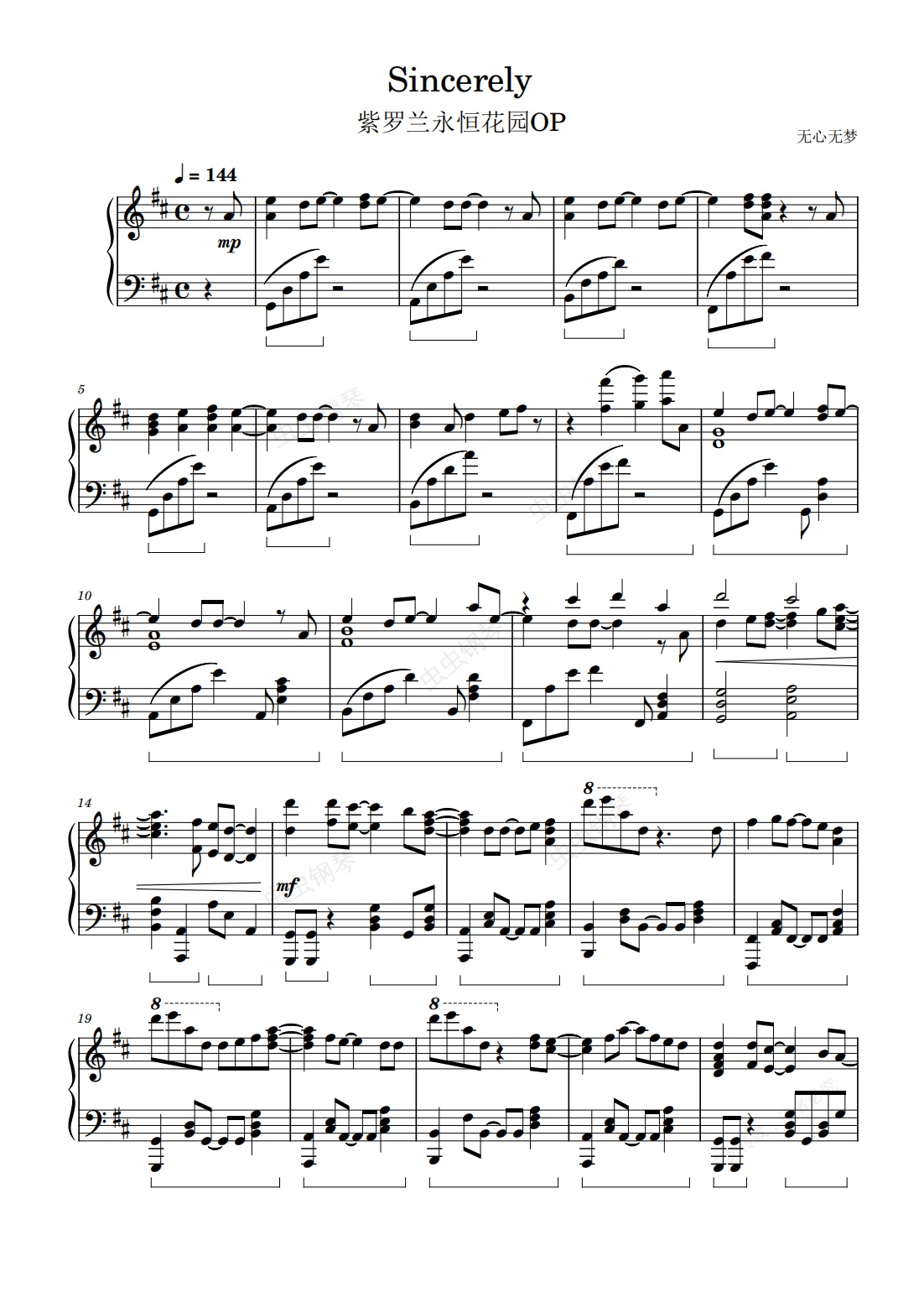 钢琴谱:紫罗兰永恒花园OP——Sincerely