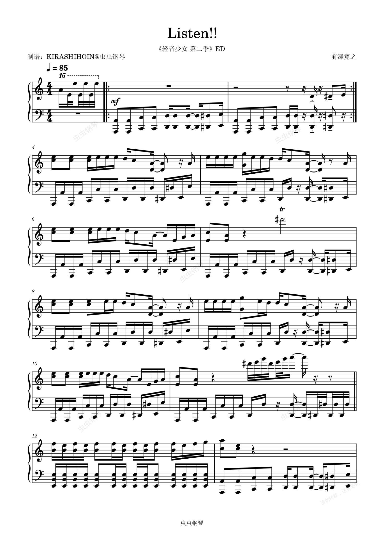 钢琴谱:Listen!!(《轻音少女 第二季》ED/片尾曲)- 放課後ティータイム