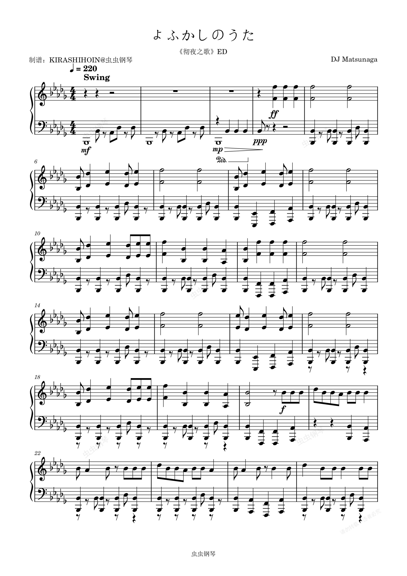 钢琴谱:よふかしのうた(《彻夜之歌》ED/片尾曲)- Creepy Nuts