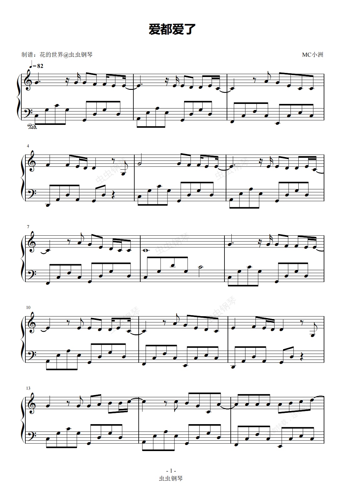 钢琴谱:爱就爱了 C调简易版本 小洲
