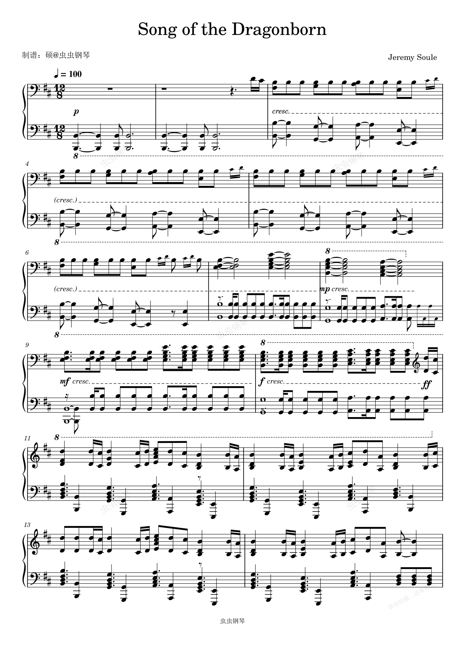钢琴谱:Dragonborn(上古卷轴5:天际插曲)