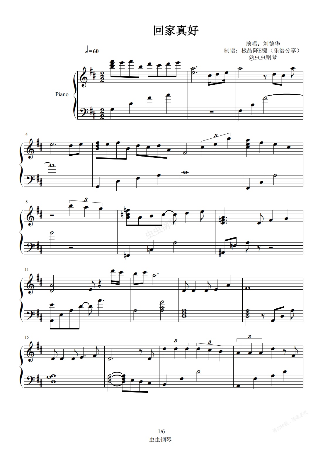 钢琴谱:回家真好(刘德华)2022倾心优化