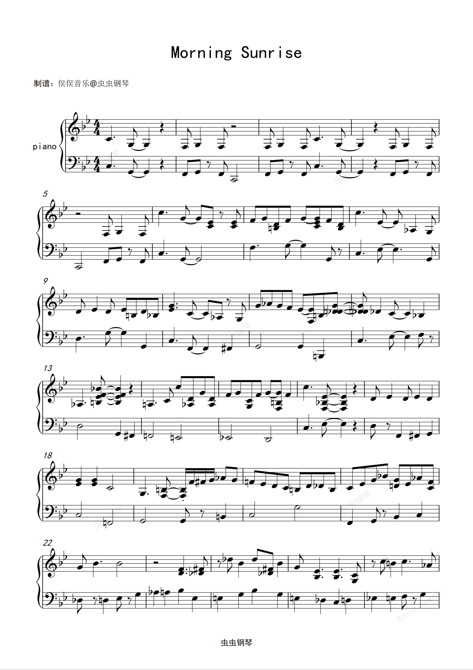 钢琴谱:爵士小品-晨辉