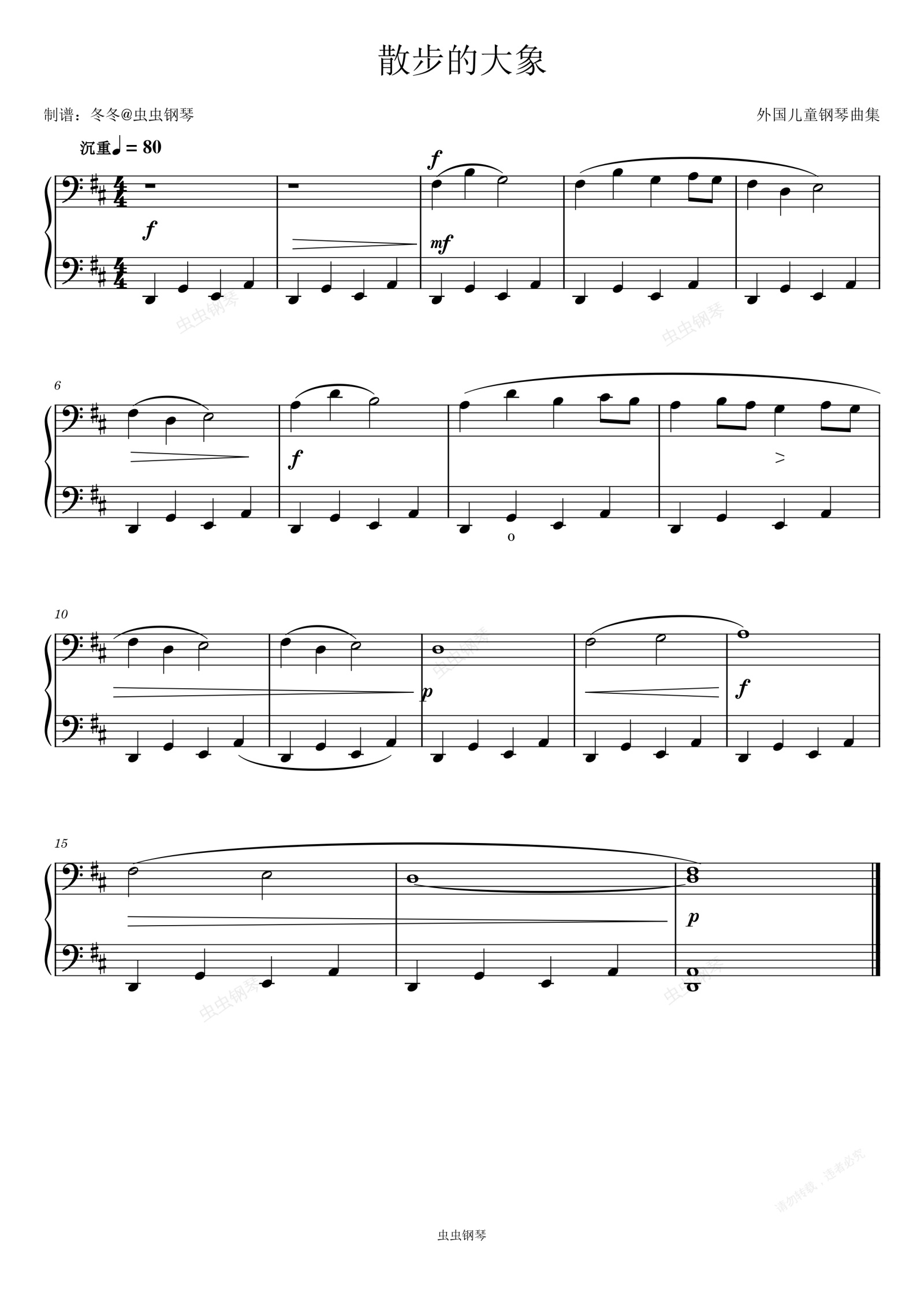 钢琴谱:散步的大象