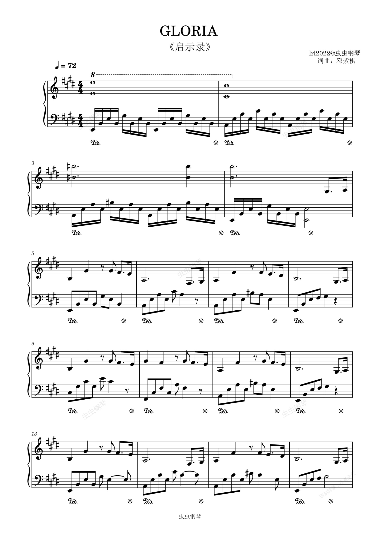 钢琴谱:GLORIA-《启示录》-邓紫棋-E大调-独奏钢琴谱
