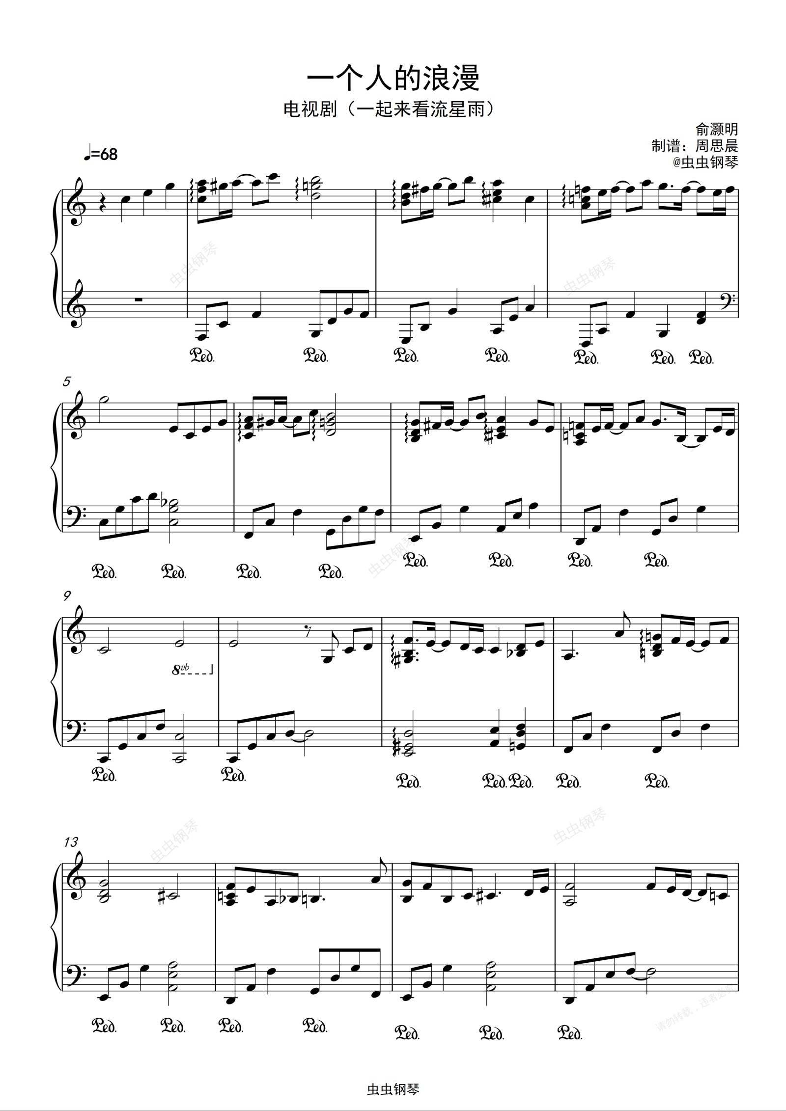 一个人的浪漫 C调完美演奏