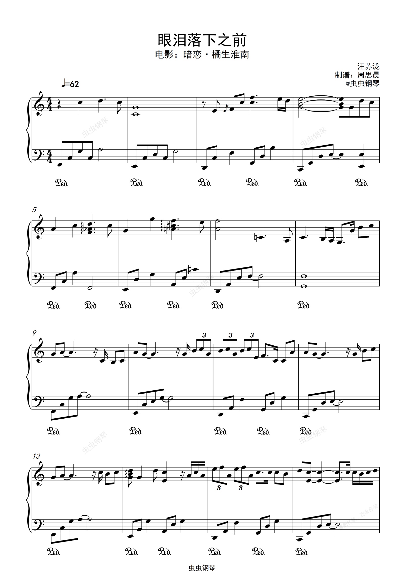 钢琴谱:眼泪落下之前 C调完美演奏 汪苏泷