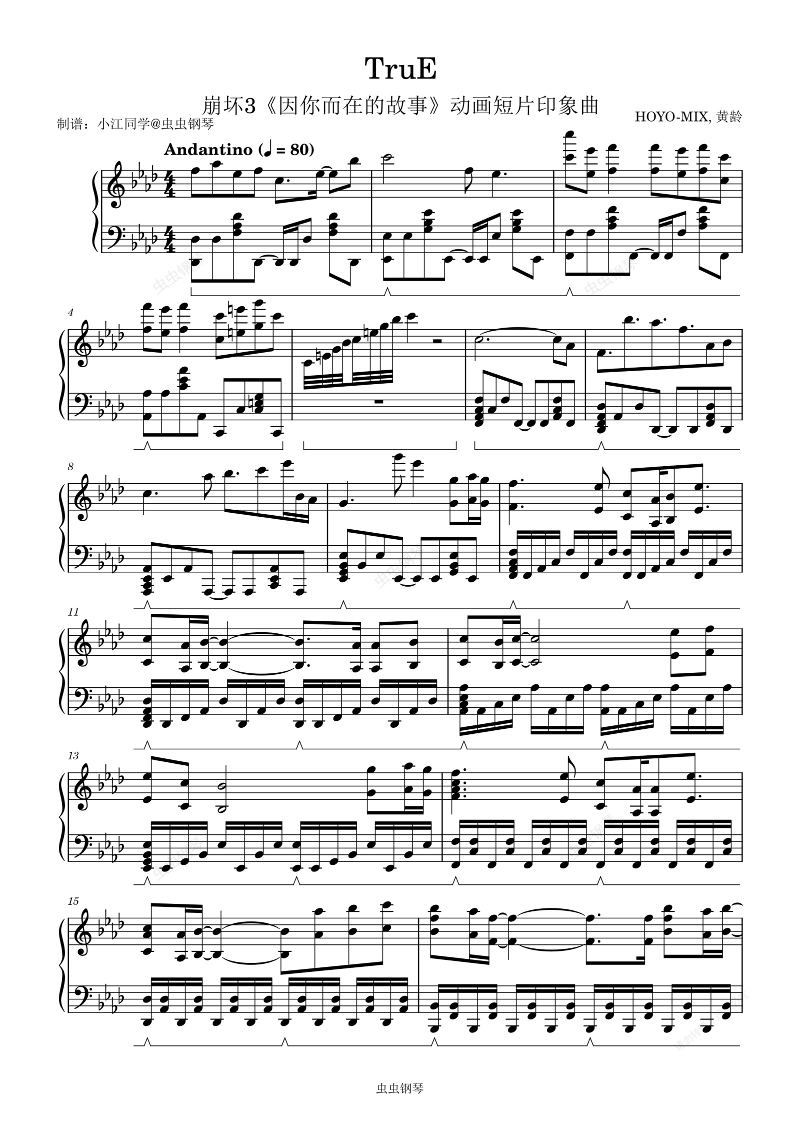 钢琴谱:TruE 崩坏3《因你而在的故事》动画短片印象曲