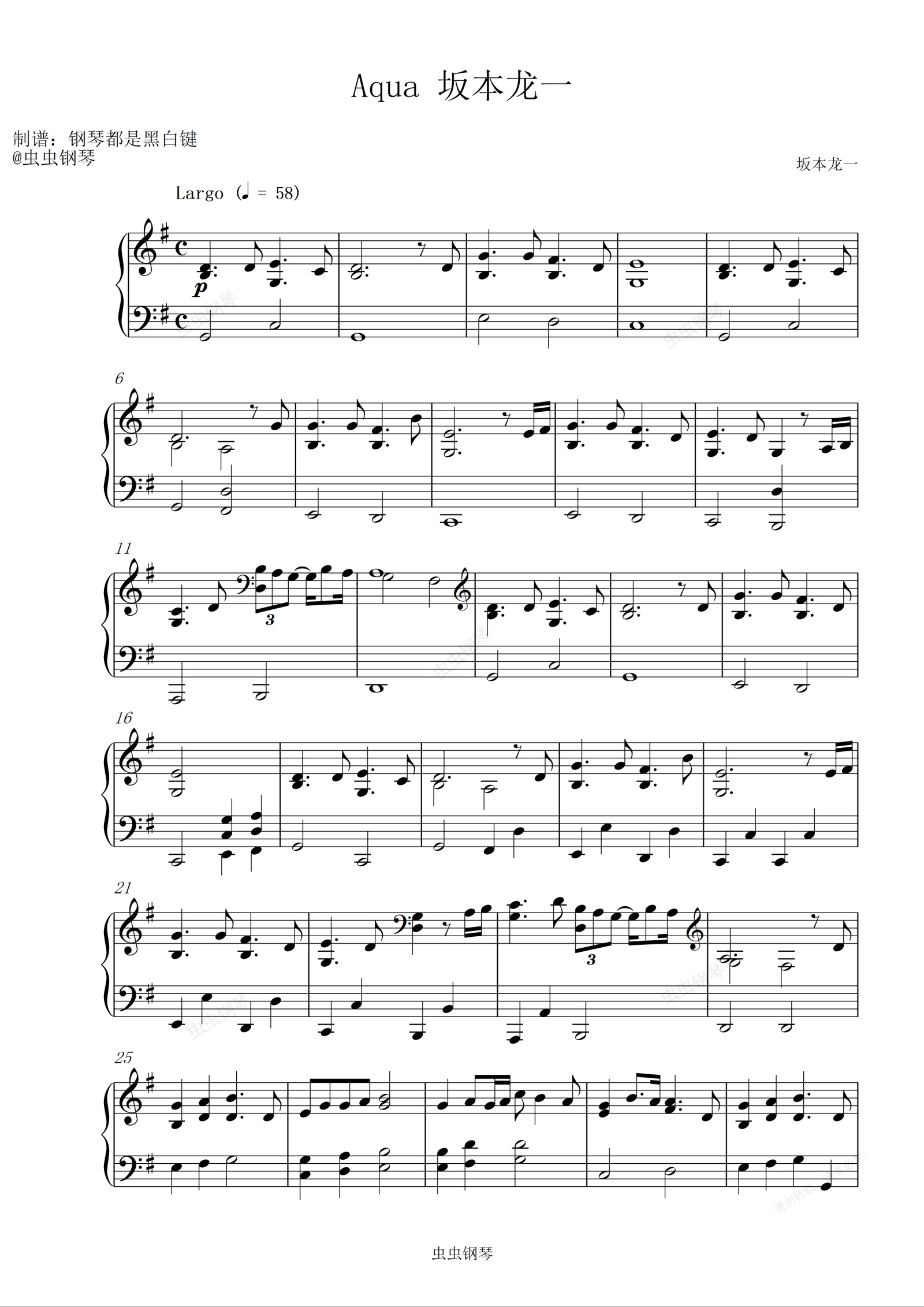 钢琴谱:Aqua - 坂本龙一【钢琴轻音乐 | 舒缓音乐】
