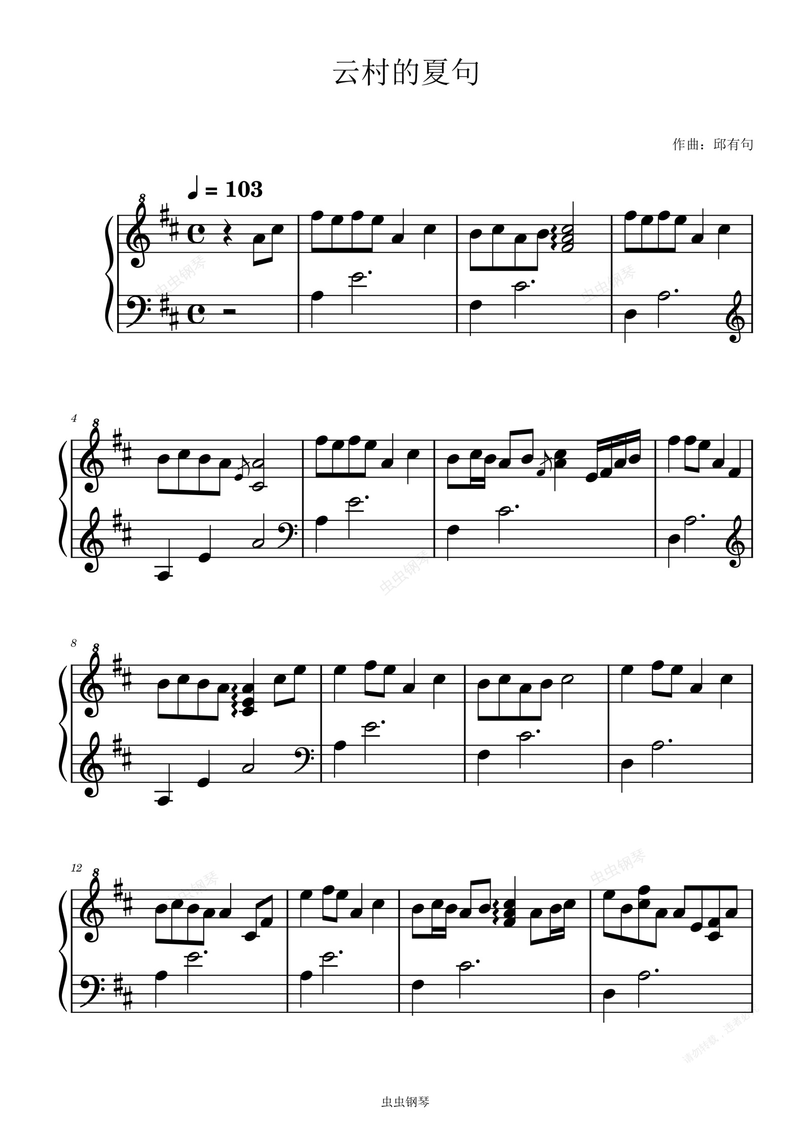 您的位置: 首页 > 钢琴谱库 > 云村的夏句钢琴谱-邱有句